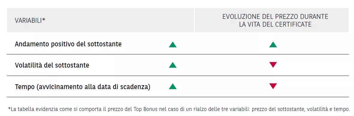 Il prezzo del Certificate riflette l’andamento del sottostante e tende a convergere verso il livello di bonus man mano che si avvicina la scadenza