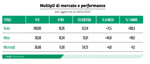 Performance e multipli: cosa ci dicono i numeri di Tesla, Meta e Microsoft