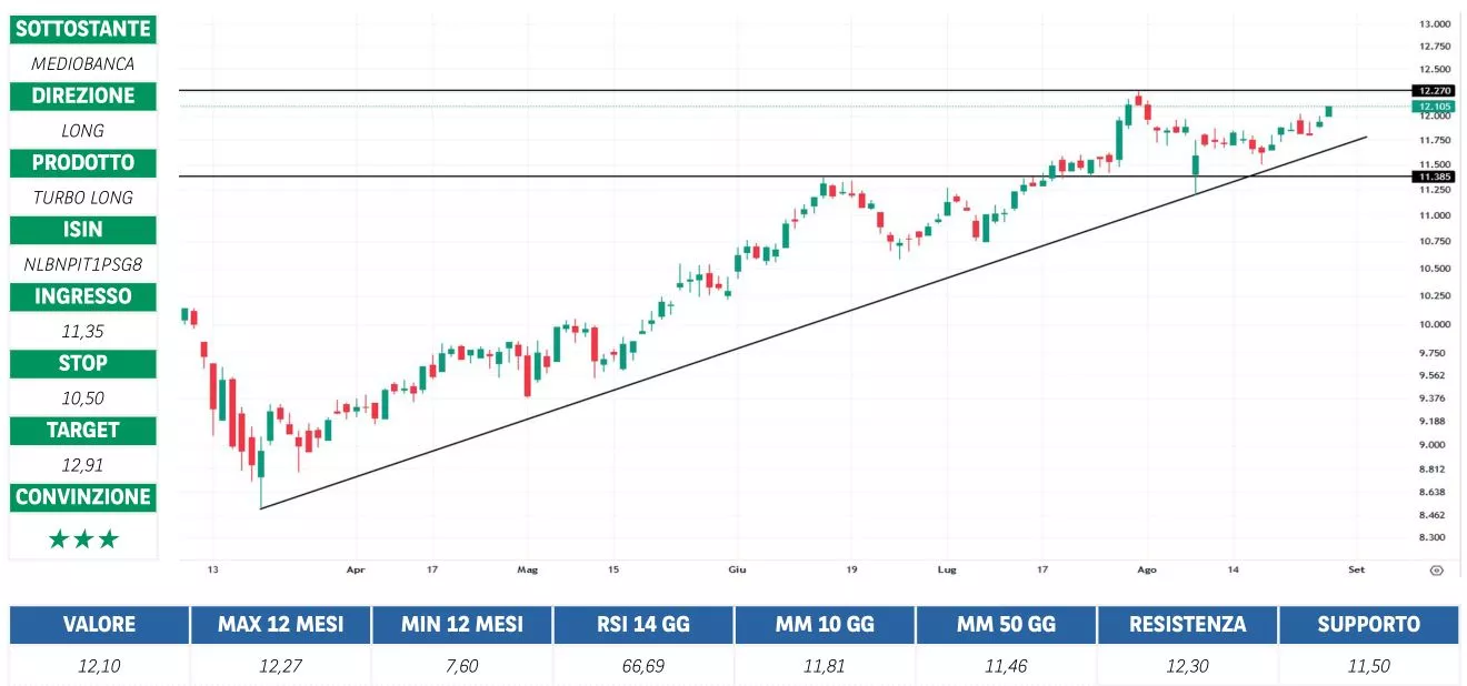 Prima di adottare una decisione di investimento al fine di comprendere appieno i potenziali rischi e benefici connessi alla decisione di investire negli strumenti finanziari quivi menzionati, si invita a leggere attentamente la relativa documentazione di offerta e/o quotazione e, in particolare, le sezioni dedicate ai fattori di rischio connessi all’investimento, ai relativi costi e al trattamento fiscale, e il relativo documento contenente le informazioni chiave (KID), ove disponibile. Tale documentazione è disponibile sul sito web investimenti.bnpparibas.it. L’investimento negli strumenti finanziari quivi menzionati può comportare il rischio di perdita totale o parziale del capitale inizialmente investito. Ove tali strumenti finanziari siano venduti prima della scadenza, l’investitore potrà incorrere anche in perdite in conto capitale. Nel caso in cui tali strumenti finanziari siano acquistati o venduti nel corso della loro durata, il rendimento potrà variare. La presente pubblicazione costituisce materiale pubblicitario e le informazioni in essa contenute hanno scopo meramente informativo e promozionale e non sono da intendersi in alcun modo come ricerca, sollecitazione o raccomandazione all’investimento, offerta al pubblico o consulenza in materia di investimenti. Le informazioni e i grafici a contenuto finanziario quivi riportati sono meramente indicativi e hanno scopo esclusivamente esemplificativo e non esaustivo. I rendimenti passati non sono indicativi, né sono garanzia, dei rendimenti futuri. È responsabilità dell’investitore effettuare un’accurata analisi di tutti i profili fiscali, legali e regolamentari (inclusi i fattori di rischio, tra i quali, i fattori di rischio legati ai tassi di interesse, i fattori di rischio di default e i fattori di rischio legati all’assenza di liquidità) connessi all’investimento negli strumenti finanziari quivi menzionati. BNP Paribas e/o altra società del gruppo BNP Paribas non potranno essere considerate responsabili delle conseguenze finanziarie o di altra natura derivanti dall’investimento in tali strumenti finanziari. Informazioni aggiornate sulla quotazione di questi ultimi sono disponibili sul sito web investimenti.bnpparibas.it. Le raccomandazioni di investimento quivi contenute non soddisfano i requisiti di legge relativi all’indipendenza della ricerca in materia di investimenti e non sono soggette ad alcun divieto di esecuzione di operazioni su strumenti finanziari prima della loro divulgazione.