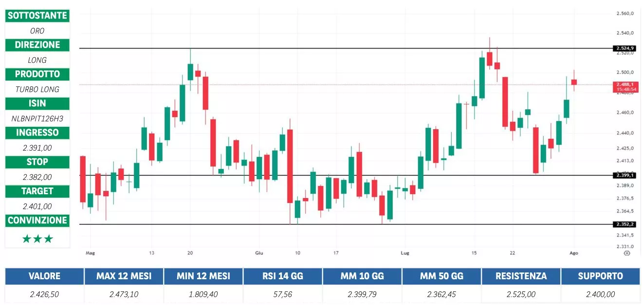 Prima di adottare una decisione di investimento al fine di comprendere appieno i potenziali rischi e benefici connessi alla decisione di investire negli strumenti finanziari quivi menzionati, si invita a leggere attentamente la relativa documentazione di offerta e/o quotazione e, in particolare, le sezioni dedicate ai fattori di rischio connessi all’investimento, ai relativi costi e al trattamento fiscale, e il relativo documento contenente le informazioni chiave (KID), ove disponibile. Tale documentazione è disponibile sul sito web investimenti.bnpparibas.it. L’investimento negli strumenti finanziari quivi menzionati può comportare il rischio di perdita totale o parziale del capitale inizialmente investito. Ove tali strumenti finanziari siano venduti prima della scadenza, l’investitore potrà incorrere anche in perdite in conto capitale. Nel caso in cui tali strumenti finanziari siano acquistati o venduti nel corso della loro durata, il rendimento potrà variare. La presente pubblicazione costituisce materiale pubblicitario e le informazioni in essa contenute hanno scopo meramente informativo e promozionale e non sono da intendersi in alcun modo come ricerca, sollecitazione o raccomandazione all’investimento, offerta al pubblico o consulenza in materia di investimenti. Le informazioni e i grafici a contenuto finanziario quivi riportati sono meramente indicativi e hanno scopo esclusivamente esemplificativo e non esaustivo. I rendimenti passati non sono indicativi, né sono garanzia, dei rendimenti futuri. È responsabilità dell’investitore effettuare un’accurata analisi di tutti i profili fiscali, legali e regolamentari (inclusi i fattori di rischio, tra i quali, i fattori di rischio legati ai tassi di interesse, i fattori di rischio di default e i fattori di rischio legati all’assenza di liquidità) connessi all’investimento negli strumenti finanziari quivi menzionati. BNP Paribas e/o altra società del gruppo BNP Paribas non potranno essere considerate responsabili delle conseguenze finanziarie o di altra natura derivanti dall’investimento in tali strumenti finanziari. Informazioni aggiornate sulla quotazione di questi ultimi sono disponibili sul sito web investimenti.bnpparibas.it. Le raccomandazioni di investimento quivi contenute non soddisfano i requisiti di legge relativi all’indipendenza della ricerca in materia di investimenti e non sono soggette ad alcun divieto di esecuzione di operazioni su strumenti finanziari prima della loro divulgazione.