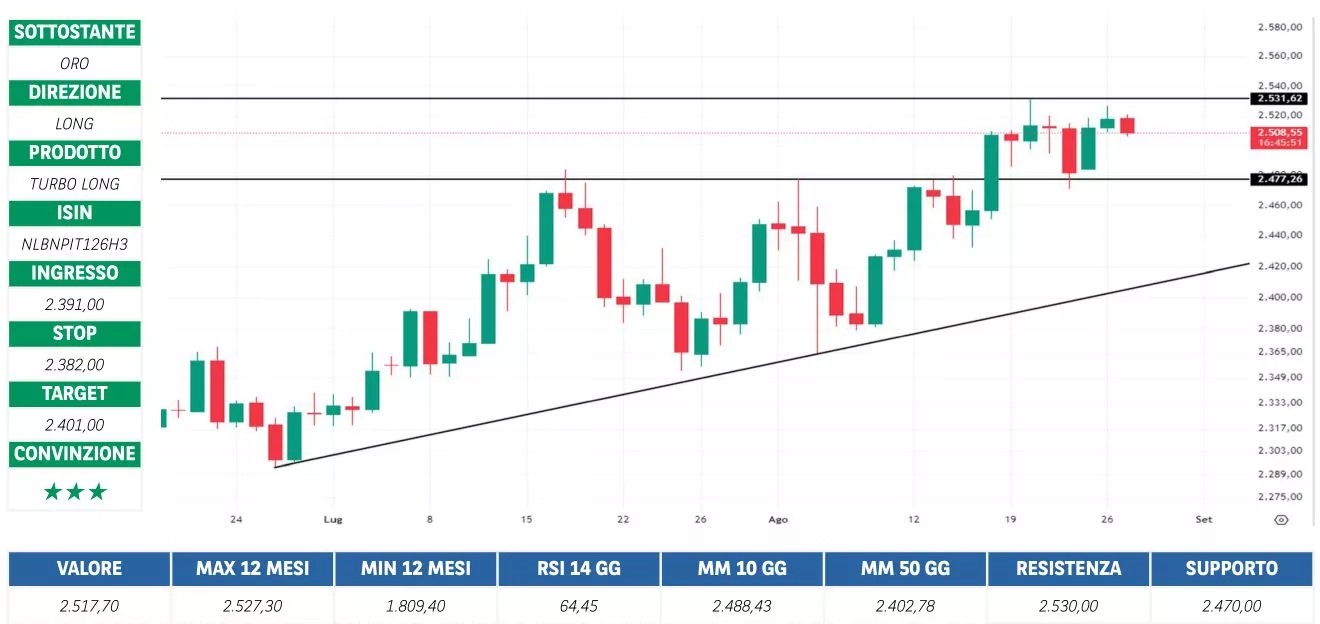 Prima di adottare una decisione di investimento al fine di comprendere appieno i potenziali rischi e benefici connessi alla decisione di investire negli strumenti finanziari quivi menzionati, si invita a leggere attentamente la relativa documentazione di offerta e/o quotazione e, in particolare, le sezioni dedicate ai fattori di rischio connessi all’investimento, ai relativi costi e al trattamento fiscale, e il relativo documento contenente le informazioni chiave (KID), ove disponibile. Tale documentazione è disponibile sul sito web investimenti.bnpparibas.it. L’investimento negli strumenti finanziari quivi menzionati può comportare il rischio di perdita totale o parziale del capitale inizialmente investito. Ove tali strumenti finanziari siano venduti prima della scadenza, l’investitore potrà incorrere anche in perdite in conto capitale. Nel caso in cui tali strumenti finanziari siano acquistati o venduti nel corso della loro durata, il rendimento potrà variare. La presente pubblicazione costituisce materiale pubblicitario e le informazioni in essa contenute hanno scopo meramente informativo e promozionale e non sono da intendersi in alcun modo come ricerca, sollecitazione o raccomandazione all’investimento, offerta al pubblico o consulenza in materia di investimenti. Le informazioni e i grafici a contenuto finanziario quivi riportati sono meramente indicativi e hanno scopo esclusivamente esemplificativo e non esaustivo. I rendimenti passati non sono indicativi, né sono garanzia, dei rendimenti futuri. È responsabilità dell’investitore effettuare un’accurata analisi di tutti i profili fiscali, legali e regolamentari (inclusi i fattori di rischio, tra i quali, i fattori di rischio legati ai tassi di interesse, i fattori di rischio di default e i fattori di rischio legati all’assenza di liquidità) connessi all’investimento negli strumenti finanziari quivi menzionati. BNP Paribas e/o altra società del gruppo BNP Paribas non potranno essere considerate responsabili delle conseguenze finanziarie o di altra natura derivanti dall’investimento in tali strumenti finanziari. Informazioni aggiornate sulla quotazione di questi ultimi sono disponibili sul sito web investimenti.bnpparibas.it. Le raccomandazioni di investimento quivi contenute non soddisfano i requisiti di legge relativi all’indipendenza della ricerca in materia di investimenti e non sono soggette ad alcun divieto di esecuzione di operazioni su strumenti finanziari prima della loro divulgazione.