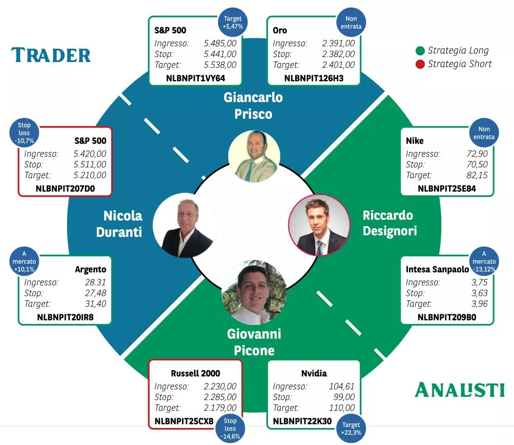 Borsa in Diretta è la newsletter giornaliera di BNP Paribas. Ogni lunedì non perderti l'appuntamento di Weekly FTSE MIB, pillola video in cui si analizza il principale indice di Borsa Italiana e si forniscono strategie operative per la settimana entrante. Inoltre, quotidianamente riceverai informazioni riguardanti notizie finanziarie e appuntamenti macroeconomici della giornata, analisi tecnica dei principali indici azionari FTSE MIB, DAX e S&P500 e aggiornamenti delle Trade Idea fatte dai migliori trader italiani durante House of Trading.