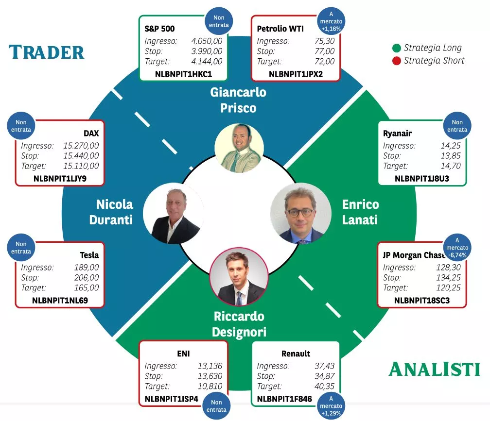 Borsa in Diretta è la newsletter giornaliera di BNP Paribas. Ogni lunedì non perderti l'appuntamento di Weekly FTSE MIB, pillola video in cui si analizza il principale indice di Borsa Italiana e si forniscono strategie operative per la settimana entrante. Inoltre, quotidianamente riceverai informazioni riguardanti notizie finanziarie e appuntamenti macroeconomici della giornata, analisi tecnica dei principali indici azionari FTSE MIB, DAX e S&P500 e aggiornamenti delle Trade Idea fatte dai migliori trader italiani durante House of Trading.