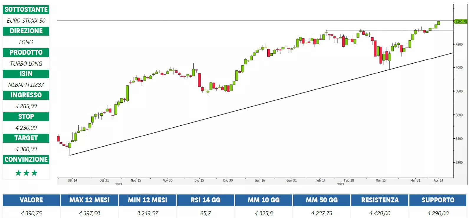Prima di adottare una decisione di investimento al fine di comprendere appieno i potenziali rischi e benefici connessi alla decisione di investire negli strumenti finanziari quivi menzionati, si invita a leggere attentamente la relativa documentazione di offerta e/o quotazione e, in particolare, le sezioni dedicate ai fattori di rischio connessi all’investimento, ai relativi costi e al trattamento fiscale, e il relativo documento contenente le informazioni chiave (KID), ove disponibile. Tale documentazione è disponibile sul sito web investimenti.bnpparibas.it. L’investimento negli strumenti finanziari quivi menzionati può comportare il rischio di perdita totale o parziale del capitale inizialmente investito. Ove tali strumenti finanziari siano venduti prima della scadenza, l’investitore potrà incorrere anche in perdite in conto capitale. Nel caso in cui tali strumenti finanziari siano acquistati o venduti nel corso della loro durata, il rendimento potrà variare. La presente pubblicazione costituisce materiale pubblicitario e le informazioni in essa contenute hanno scopo meramente informativo e promozionale e non sono da intendersi in alcun modo come ricerca, sollecitazione o raccomandazione all’investimento, offerta al pubblico o consulenza in materia di investimenti. Le informazioni e i grafici a contenuto finanziario quivi riportati sono meramente indicativi e hanno scopo esclusivamente esemplificativo e non esaustivo. I rendimenti passati non sono indicativi, né sono garanzia, dei rendimenti futuri. È responsabilità dell’investitore effettuare un’accurata analisi di tutti i profili fiscali, legali e regolamentari (inclusi i fattori di rischio, tra i quali, i fattori di rischio legati ai tassi di interesse, i fattori di rischio di default e i fattori di rischio legati all’assenza di liquidità) connessi all’investimento negli strumenti finanziari quivi menzionati. BNP Paribas e/o altra società del gruppo BNP Paribas non potranno essere considerate responsabili delle conseguenze finanziarie o di altra natura derivanti dall’investimento in tali strumenti finanziari. Informazioni aggiornate sulla quotazione di questi ultimi sono disponibili sul sito web investimenti.bnpparibas.it. Le raccomandazioni di investimento quivi contenute non soddisfano i requisiti di legge relativi all’indipendenza della ricerca in materia di investimenti e non sono soggette ad alcun divieto di esecuzione di operazioni su strumenti finanziari prima della loro divulgazione.