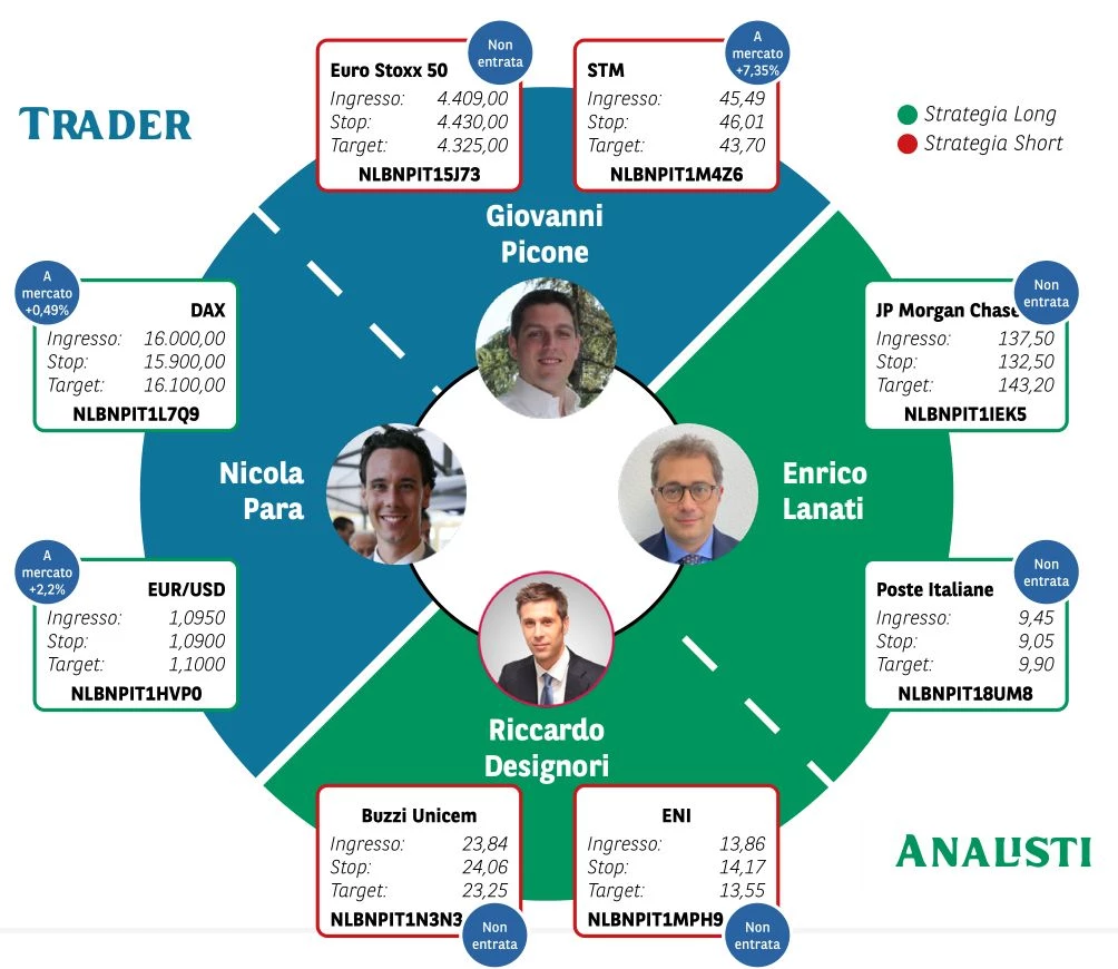 Borsa in Diretta è la newsletter giornaliera di BNP Paribas. Ogni lunedì non perderti l'appuntamento di Weekly FTSE MIB, pillola video in cui si analizza il principale indice di Borsa Italiana e si forniscono strategie operative per la settimana entrante. Inoltre, quotidianamente riceverai informazioni riguardanti notizie finanziarie e appuntamenti macroeconomici della giornata, analisi tecnica dei principali indici azionari FTSE MIB, DAX e S&P500 e aggiornamenti delle Trade Idea fatte dai migliori trader italiani durante House of Trading.