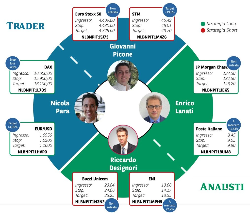 Borsa in Diretta è la newsletter giornaliera di BNP Paribas. Ogni lunedì non perderti l'appuntamento di Weekly FTSE MIB, pillola video in cui si analizza il principale indice di Borsa Italiana e si forniscono strategie operative per la settimana entrante. Inoltre, quotidianamente riceverai informazioni riguardanti notizie finanziarie e appuntamenti macroeconomici della giornata, analisi tecnica dei principali indici azionari FTSE MIB, DAX e S&P500 e aggiornamenti delle Trade Idea fatte dai migliori trader italiani durante House of Trading.