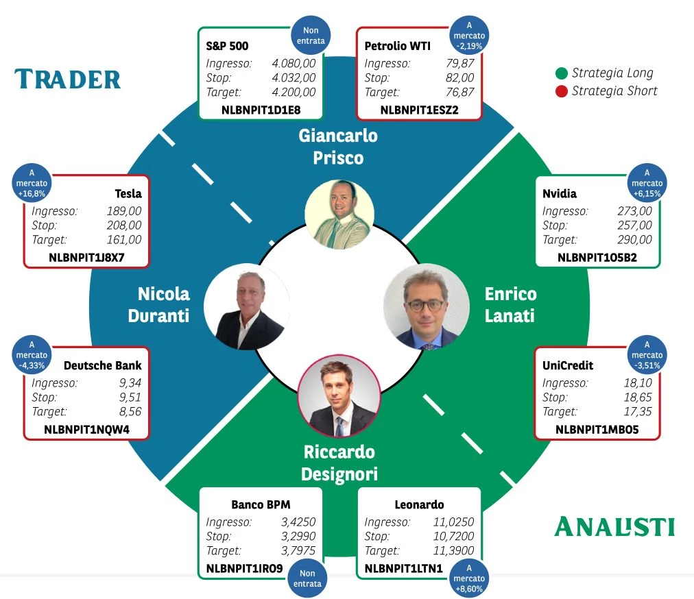Borsa in Diretta è la newsletter giornaliera di BNP Paribas. Ogni lunedì non perderti l'appuntamento di Weekly FTSE MIB, pillola video in cui si analizza il principale indice di Borsa Italiana e si forniscono strategie operative per la settimana entrante. Inoltre, quotidianamente riceverai informazioni riguardanti notizie finanziarie e appuntamenti macroeconomici della giornata, analisi tecnica dei principali indici azionari FTSE MIB, DAX e S&P500 e aggiornamenti delle Trade Idea fatte dai migliori trader italiani durante House of Trading.