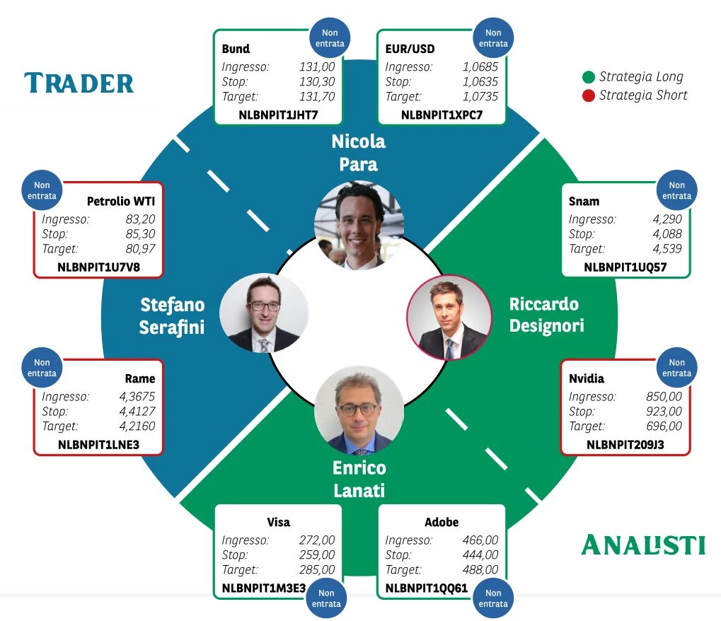 Borsa in Diretta è la newsletter giornaliera di BNP Paribas. Ogni lunedì non perderti l'appuntamento di Weekly FTSE MIB, pillola video in cui si analizza il principale indice di Borsa Italiana e si forniscono strategie operative per la settimana entrante. Inoltre, quotidianamente riceverai informazioni riguardanti notizie finanziarie e appuntamenti macroeconomici della giornata, analisi tecnica dei principali indici azionari FTSE MIB, DAX e S&P500 e aggiornamenti delle Trade Idea fatte dai migliori trader italiani durante House of Trading.