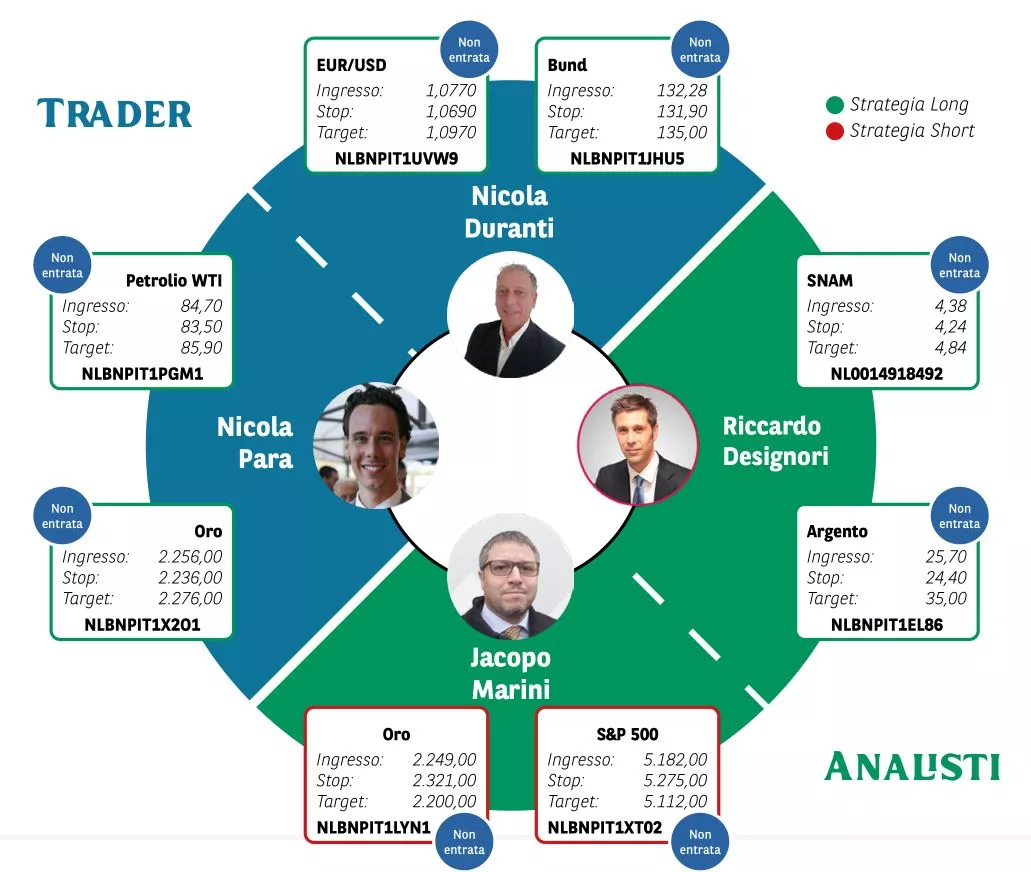 Borsa in Diretta è la newsletter giornaliera di BNP Paribas. Ogni lunedì non perderti l'appuntamento di Weekly FTSE MIB, pillola video in cui si analizza il principale indice di Borsa Italiana e si forniscono strategie operative per la settimana entrante. Inoltre, quotidianamente riceverai informazioni riguardanti notizie finanziarie e appuntamenti macroeconomici della giornata, analisi tecnica dei principali indici azionari FTSE MIB, DAX e S&P500 e aggiornamenti delle Trade Idea fatte dai migliori trader italiani durante House of Trading.