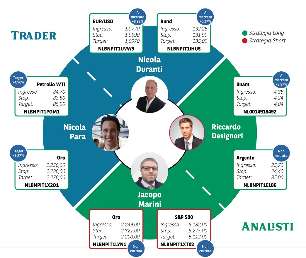 Borsa in Diretta è la newsletter giornaliera di BNP Paribas. Ogni lunedì non perderti l'appuntamento di Weekly FTSE MIB, pillola video in cui si analizza il principale indice di Borsa Italiana e si forniscono strategie operative per la settimana entrante. Inoltre, quotidianamente riceverai informazioni riguardanti notizie finanziarie e appuntamenti macroeconomici della giornata, analisi tecnica dei principali indici azionari FTSE MIB, DAX e S&P500 e aggiornamenti delle Trade Idea fatte dai migliori trader italiani durante House of Trading.