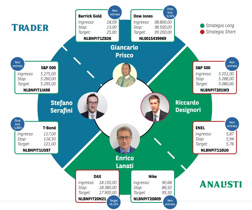 Borsa in Diretta è la newsletter giornaliera di BNP Paribas. Ogni lunedì non perderti l'appuntamento di Weekly FTSE MIB, pillola video in cui si analizza il principale indice di Borsa Italiana e si forniscono strategie operative per la settimana entrante. Inoltre, quotidianamente riceverai informazioni riguardanti notizie finanziarie e appuntamenti macroeconomici della giornata, analisi tecnica dei principali indici azionari FTSE MIB, DAX e S&P500 e aggiornamenti delle Trade Idea fatte dai migliori trader italiani durante House of Trading.