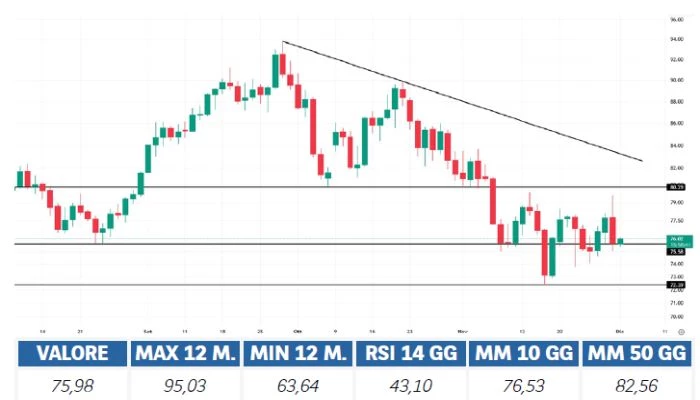 Prima di adottare una decisione di investimento al fine di comprendere appieno i potenziali rischi e benefici connessi alla decisione di investire negli strumenti finanziari quivi menzionati, si invita a leggere attentamente la relativa documentazione di offerta e/o quotazione e, in particolare, le sezioni dedicate ai fattori di rischio connessi all’investimento, ai relativi costi e al trattamento fiscale, e il relativo documento contenente le informazioni chiave (KID), ove disponibile. Tale documentazione è disponibile sul sito web investimenti.bnpparibas.it. L’investimento negli strumenti finanziari quivi menzionati può comportare il rischio di perdita totale o parziale del capitale inizialmente investito. Ove tali strumenti finanziari siano venduti prima della scadenza, l’investitore potrà incorrere anche in perdite in conto capitale. Nel caso in cui tali strumenti finanziari siano acquistati o venduti nel corso della loro durata, il rendimento potrà variare. La presente pubblicazione costituisce materiale pubblicitario e le informazioni in essa contenute hanno scopo meramente informativo e promozionale e non sono da intendersi in alcun modo come ricerca, sollecitazione o raccomandazione all’investimento, offerta al pubblico o consulenza in materia di investimenti. Le informazioni e i grafici a contenuto finanziario quivi riportati sono meramente indicativi e hanno scopo esclusivamente esemplificativo e non esaustivo. I rendimenti passati non sono indicativi, né sono garanzia, dei rendimenti futuri. È responsabilità dell’investitore effettuare un’accurata analisi di tutti i profili fiscali, legali e regolamentari (inclusi i fattori di rischio, tra i quali, i fattori di rischio legati ai tassi di interesse, i fattori di rischio di default e i fattori di rischio legati all’assenza di liquidità) connessi all’investimento negli strumenti finanziari quivi menzionati. BNP Paribas e/o altra società del gruppo BNP Paribas non potranno essere considerate responsabili delle conseguenze finanziarie o di altra natura derivanti dall’investimento in tali strumenti finanziari. Informazioni aggiornate sulla quotazione di questi ultimi sono disponibili sul sito web investimenti.bnpparibas.it. Le raccomandazioni di investimento quivi contenute non soddisfano i requisiti di legge relativi all’indipendenza della ricerca in materia di investimenti e non sono soggette ad alcun divieto di esecuzione di operazioni su strumenti finanziari prima della loro divulgazione.