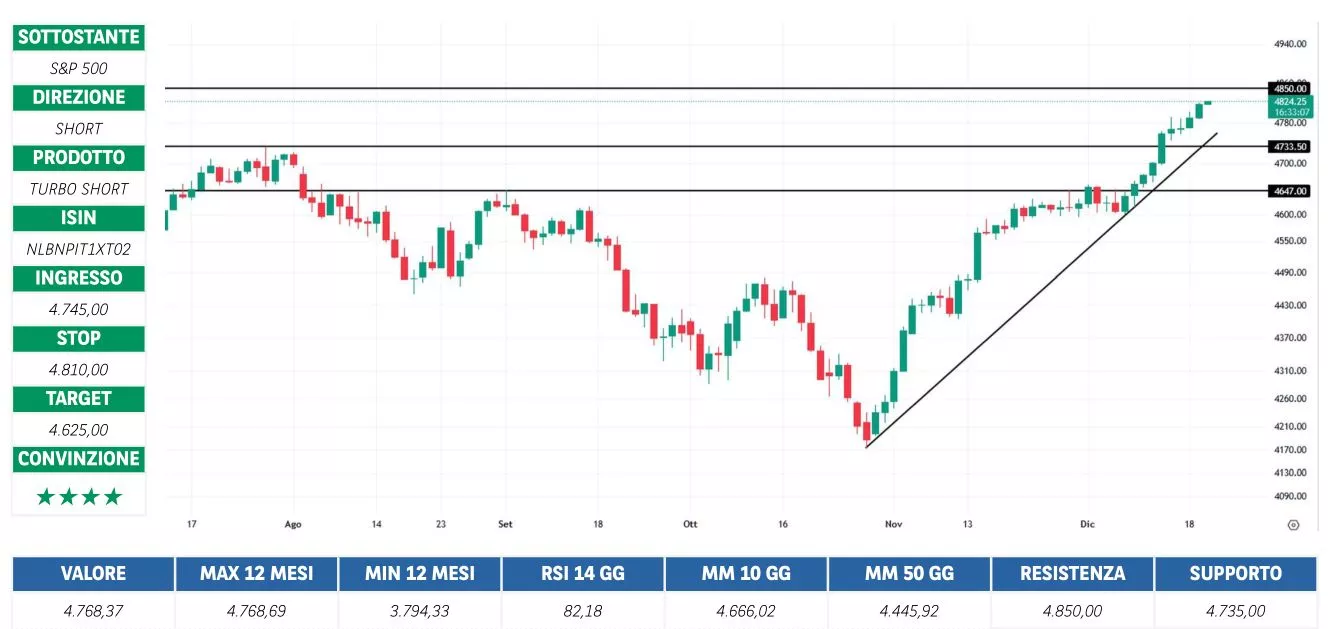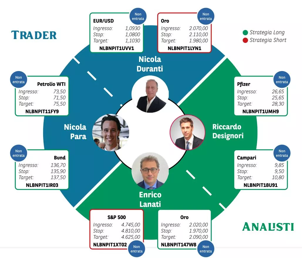 Borsa in Diretta è la newsletter giornaliera di BNP Paribas. Ogni lunedì non perderti l'appuntamento di Weekly FTSE MIB, pillola video in cui si analizza il principale indice di Borsa Italiana e si forniscono strategie operative per la settimana entrante. Inoltre, quotidianamente riceverai informazioni riguardanti notizie finanziarie e appuntamenti macroeconomici della giornata, analisi tecnica dei principali indici azionari FTSE MIB, DAX e S&P500 e aggiornamenti delle Trade Idea fatte dai migliori trader italiani durante House of Trading.