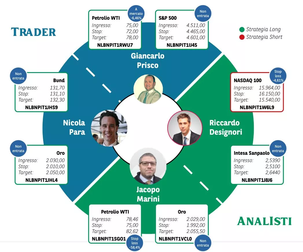 Borsa in Diretta è la newsletter giornaliera di BNP Paribas. Ogni lunedì non perderti l'appuntamento di Weekly FTSE MIB, pillola video in cui si analizza il principale indice di Borsa Italiana e si forniscono strategie operative per la settimana entrante. Inoltre, quotidianamente riceverai informazioni riguardanti notizie finanziarie e appuntamenti macroeconomici della giornata, analisi tecnica dei principali indici azionari FTSE MIB, DAX e S&P500 e aggiornamenti delle Trade Idea fatte dai migliori trader italiani durante House of Trading.