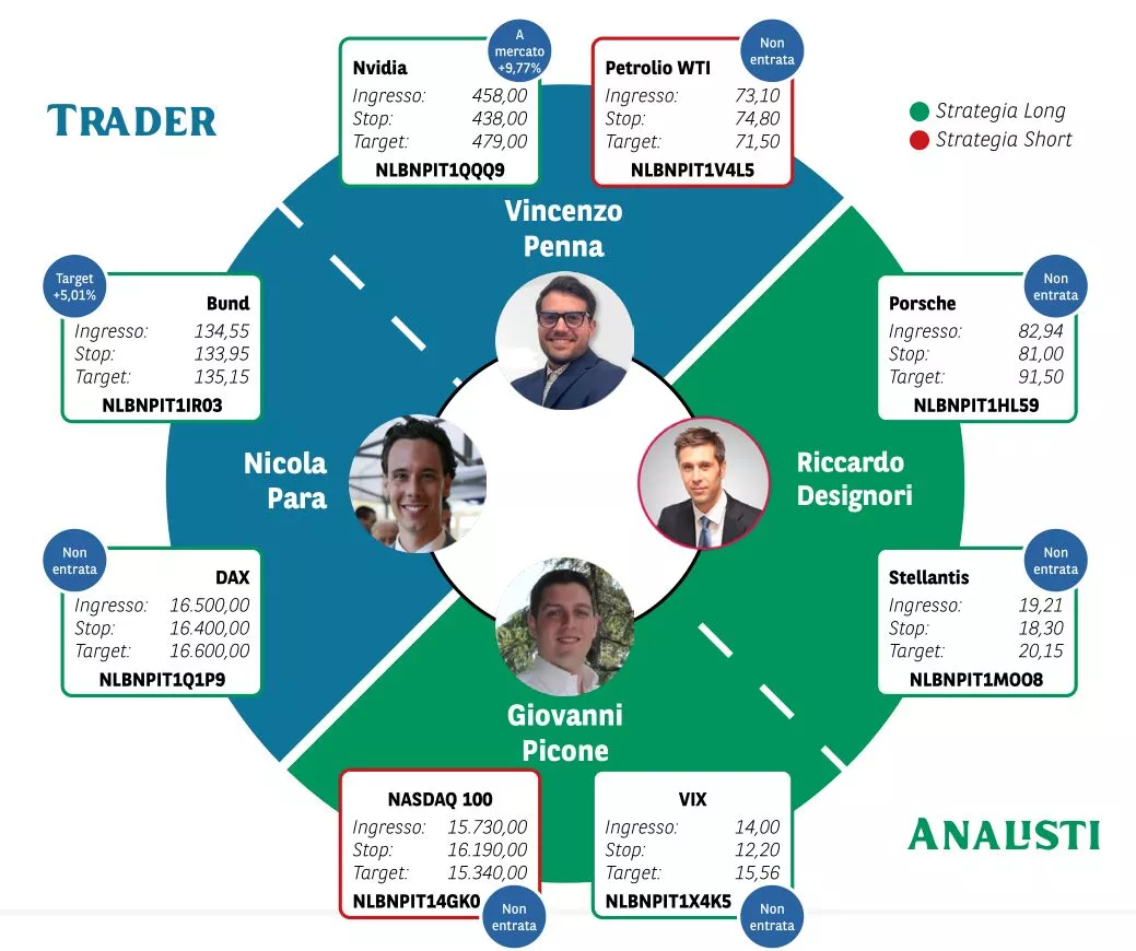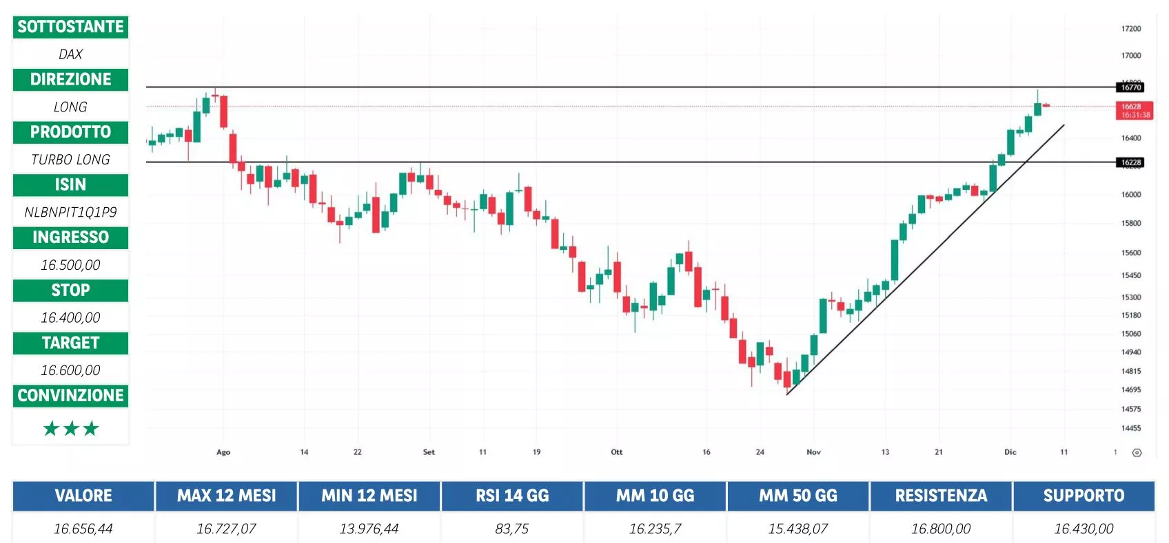 Borsa in Diretta è la newsletter giornaliera di BNP Paribas. Ogni lunedì non perderti l'appuntamento di Weekly FTSE MIB, pillola video in cui si analizza il principale indice di Borsa Italiana e si forniscono strategie operative per la settimana entrante. Inoltre, quotidianamente riceverai informazioni riguardanti notizie finanziarie e appuntamenti macroeconomici della giornata, analisi tecnica dei principali indici azionari FTSE MIB, DAX e S&P500 e aggiornamenti delle Trade Idea fatte dai migliori trader italiani durante House of Trading.