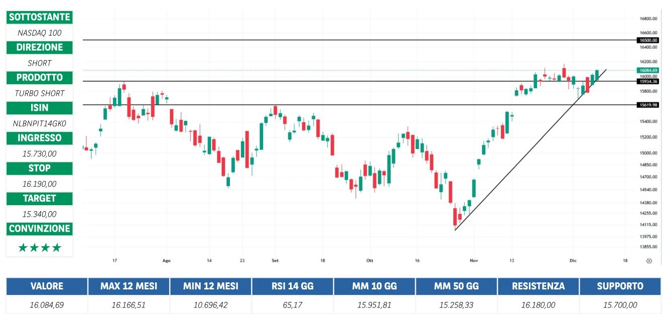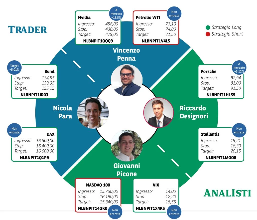 Borsa in Diretta è la newsletter giornaliera di BNP Paribas. Ogni lunedì non perderti l'appuntamento di Weekly FTSE MIB, pillola video in cui si analizza il principale indice di Borsa Italiana e si forniscono strategie operative per la settimana entrante. Inoltre, quotidianamente riceverai informazioni riguardanti notizie finanziarie e appuntamenti macroeconomici della giornata, analisi tecnica dei principali indici azionari FTSE MIB, DAX e S&P500 e aggiornamenti delle Trade Idea fatte dai migliori trader italiani durante House of Trading.