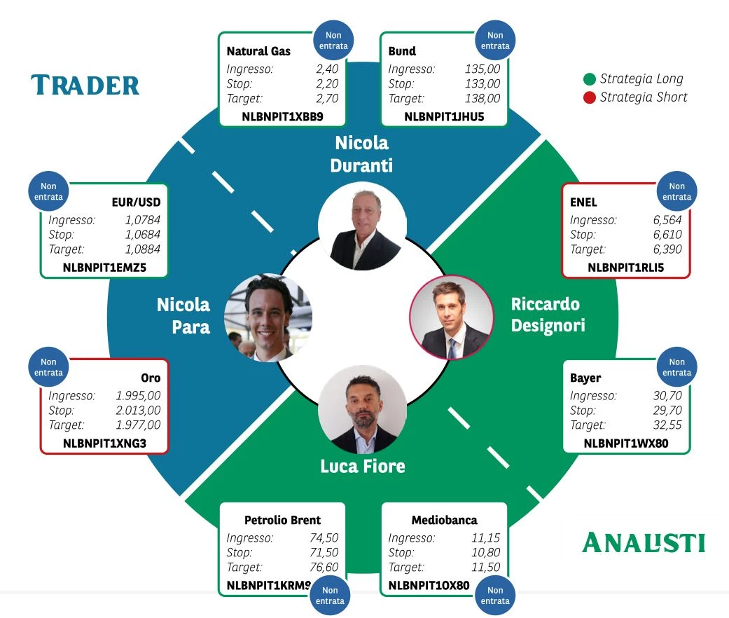 Borsa in Diretta è la newsletter giornaliera di BNP Paribas. Ogni lunedì non perderti l'appuntamento di Weekly FTSE MIB, pillola video in cui si analizza il principale indice di Borsa Italiana e si forniscono strategie operative per la settimana entrante. Inoltre, quotidianamente riceverai informazioni riguardanti notizie finanziarie e appuntamenti macroeconomici della giornata, analisi tecnica dei principali indici azionari FTSE MIB, DAX e S&P500 e aggiornamenti delle Trade Idea fatte dai migliori trader italiani durante House of Trading.