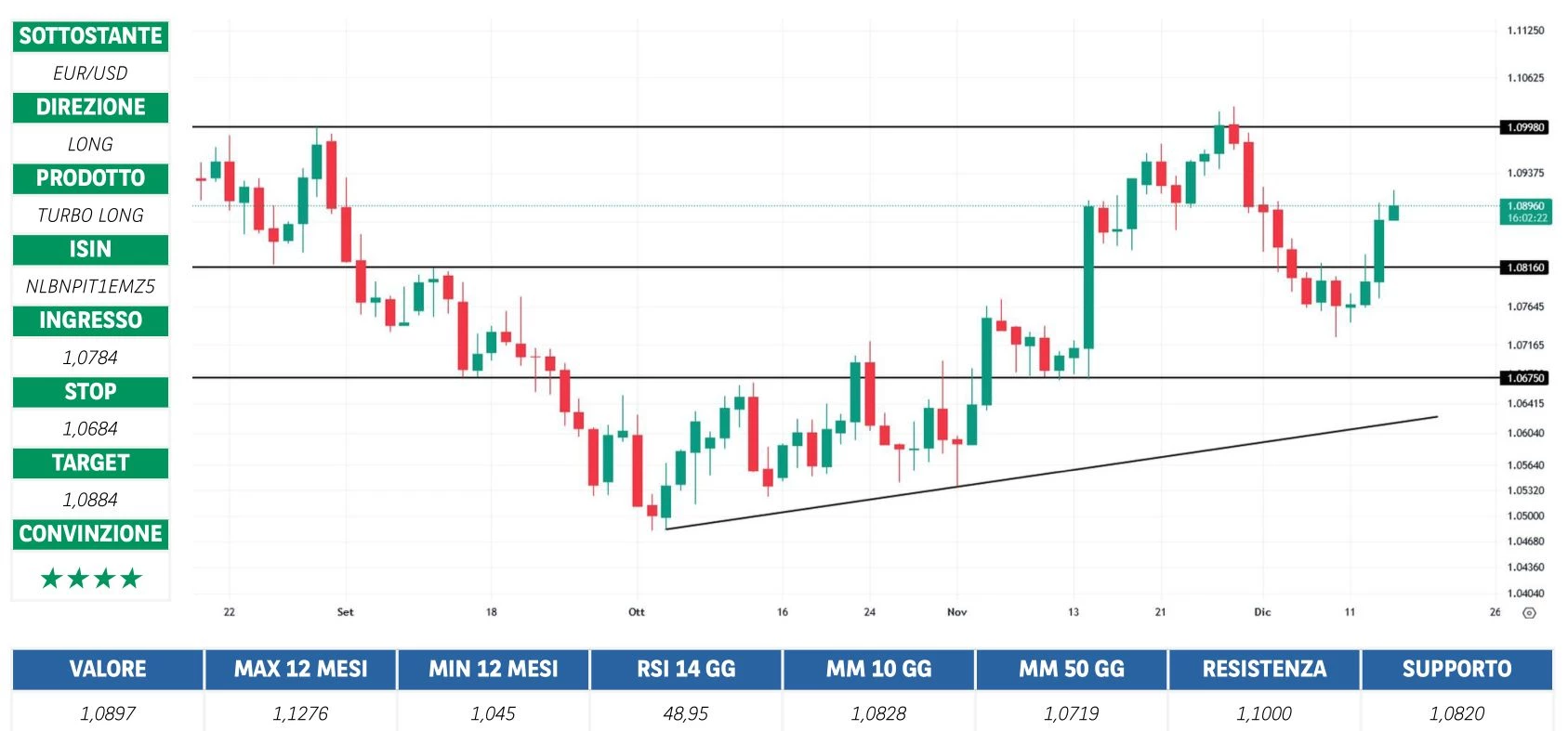 Prima di adottare una decisione di investimento al fine di comprendere appieno i potenziali rischi e benefici connessi alla decisione di investire negli strumenti finanziari quivi menzionati, si invita a leggere attentamente la relativa documentazione di offerta e/o quotazione e, in particolare, le sezioni dedicate ai fattori di rischio connessi all’investimento, ai relativi costi e al trattamento fiscale, e il relativo documento contenente le informazioni chiave (KID), ove disponibile. Tale documentazione è disponibile sul sito web investimenti.bnpparibas.it. L’investimento negli strumenti finanziari quivi menzionati può comportare il rischio di perdita totale o parziale del capitale inizialmente investito. Ove tali strumenti finanziari siano venduti prima della scadenza, l’investitore potrà incorrere anche in perdite in conto capitale. Nel caso in cui tali strumenti finanziari siano acquistati o venduti nel corso della loro durata, il rendimento potrà variare. La presente pubblicazione costituisce materiale pubblicitario e le informazioni in essa contenute hanno scopo meramente informativo e promozionale e non sono da intendersi in alcun modo come ricerca, sollecitazione o raccomandazione all’investimento, offerta al pubblico o consulenza in materia di investimenti. Le informazioni e i grafici a contenuto finanziario quivi riportati sono meramente indicativi e hanno scopo esclusivamente esemplificativo e non esaustivo. I rendimenti passati non sono indicativi, né sono garanzia, dei rendimenti futuri. È responsabilità dell’investitore effettuare un’accurata analisi di tutti i profili fiscali, legali e regolamentari (inclusi i fattori di rischio, tra i quali, i fattori di rischio legati ai tassi di interesse, i fattori di rischio di default e i fattori di rischio legati all’assenza di liquidità) connessi all’investimento negli strumenti finanziari quivi menzionati. BNP Paribas e/o altra società del gruppo BNP Paribas non potranno essere considerate responsabili delle conseguenze finanziarie o di altra natura derivanti dall’investimento in tali strumenti finanziari. Informazioni aggiornate sulla quotazione di questi ultimi sono disponibili sul sito web investimenti.bnpparibas.it. Le raccomandazioni di investimento quivi contenute non soddisfano i requisiti di legge relativi all’indipendenza della ricerca in materia di investimenti e non sono soggette ad alcun divieto di esecuzione di operazioni su strumenti finanziari prima della loro divulgazione.