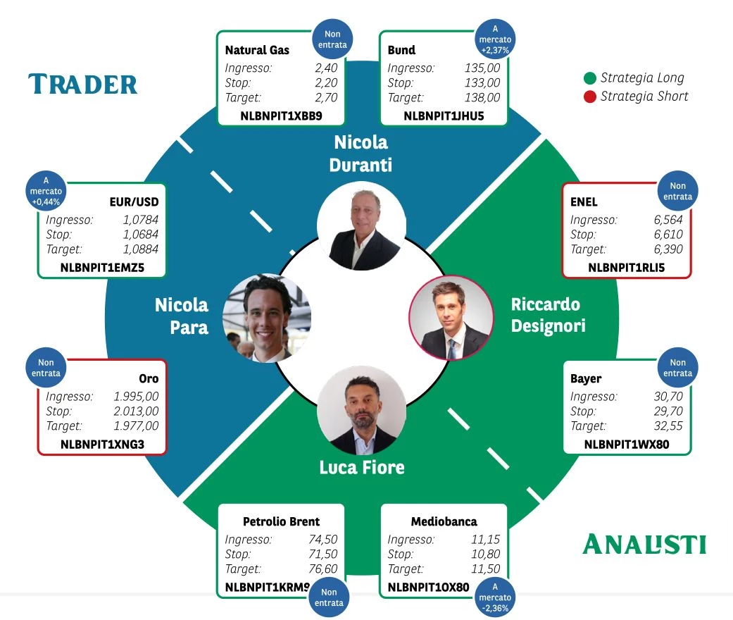 Borsa in Diretta è la newsletter giornaliera di BNP Paribas. Ogni lunedì non perderti l'appuntamento di Weekly FTSE MIB, pillola video in cui si analizza il principale indice di Borsa Italiana e si forniscono strategie operative per la settimana entrante. Inoltre, quotidianamente riceverai informazioni riguardanti notizie finanziarie e appuntamenti macroeconomici della giornata, analisi tecnica dei principali indici azionari FTSE MIB, DAX e S&P500 e aggiornamenti delle Trade Idea fatte dai migliori trader italiani durante House of Trading.