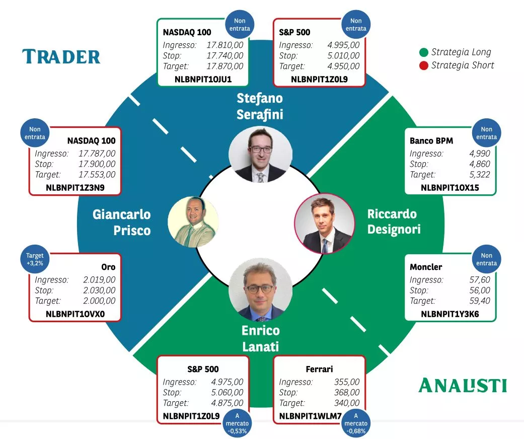 Borsa in Diretta è la newsletter giornaliera di BNP Paribas. Ogni lunedì non perderti l'appuntamento di Weekly FTSE MIB, pillola video in cui si analizza il principale indice di Borsa Italiana e si forniscono strategie operative per la settimana entrante. Inoltre, quotidianamente riceverai informazioni riguardanti notizie finanziarie e appuntamenti macroeconomici della giornata, analisi tecnica dei principali indici azionari FTSE MIB, DAX e S&P500 e aggiornamenti delle Trade Idea fatte dai migliori trader italiani durante House of Trading.