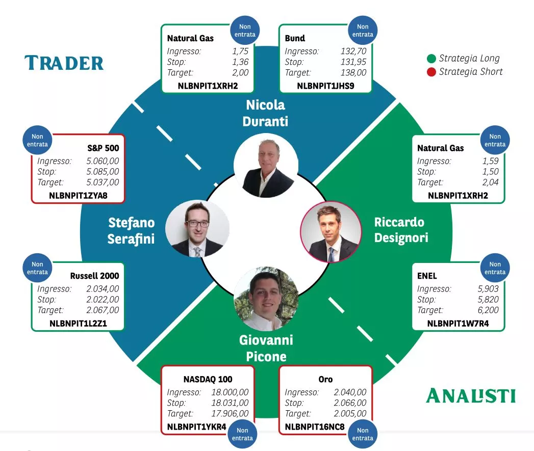 Borsa in Diretta è la newsletter giornaliera di BNP Paribas. Ogni lunedì non perderti l'appuntamento di Weekly FTSE MIB, pillola video in cui si analizza il principale indice di Borsa Italiana e si forniscono strategie operative per la settimana entrante. Inoltre, quotidianamente riceverai informazioni riguardanti notizie finanziarie e appuntamenti macroeconomici della giornata, analisi tecnica dei principali indici azionari FTSE MIB, DAX e S&P500 e aggiornamenti delle Trade Idea fatte dai migliori trader italiani durante House of Trading.