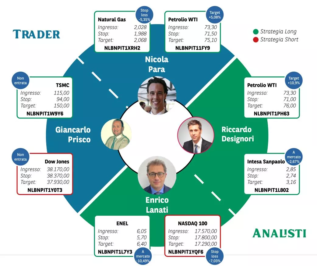 Borsa in Diretta è la newsletter giornaliera di BNP Paribas. Ogni lunedì non perderti l'appuntamento di Weekly FTSE MIB, pillola video in cui si analizza il principale indice di Borsa Italiana e si forniscono strategie operative per la settimana entrante. Inoltre, quotidianamente riceverai informazioni riguardanti notizie finanziarie e appuntamenti macroeconomici della giornata, analisi tecnica dei principali indici azionari FTSE MIB, DAX e S&P500 e aggiornamenti delle Trade Idea fatte dai migliori trader italiani durante House of Trading.