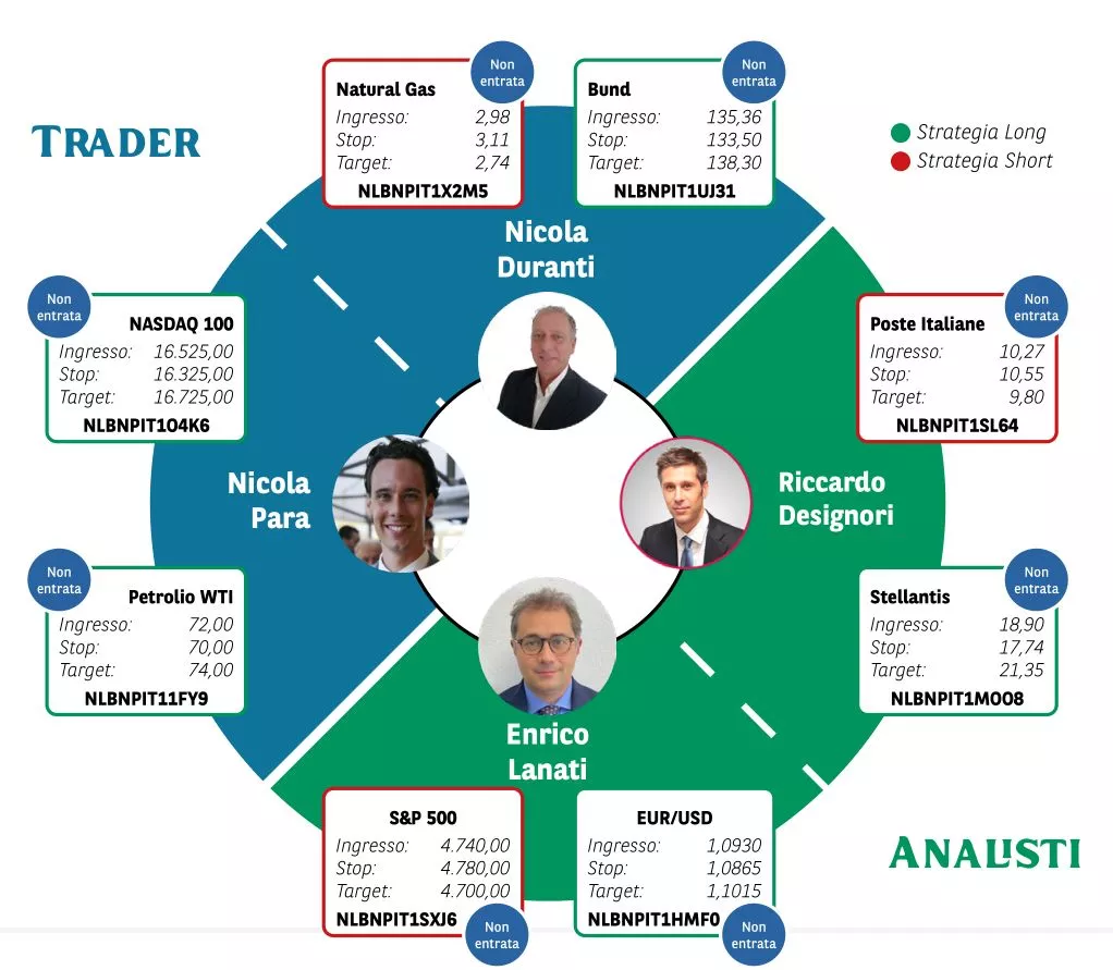 Borsa in Diretta è la newsletter giornaliera di BNP Paribas. Ogni lunedì non perderti l'appuntamento di Weekly FTSE MIB, pillola video in cui si analizza il principale indice di Borsa Italiana e si forniscono strategie operative per la settimana entrante. Inoltre, quotidianamente riceverai informazioni riguardanti notizie finanziarie e appuntamenti macroeconomici della giornata, analisi tecnica dei principali indici azionari FTSE MIB, DAX e S&P500 e aggiornamenti delle Trade Idea fatte dai migliori trader italiani durante House of Trading.