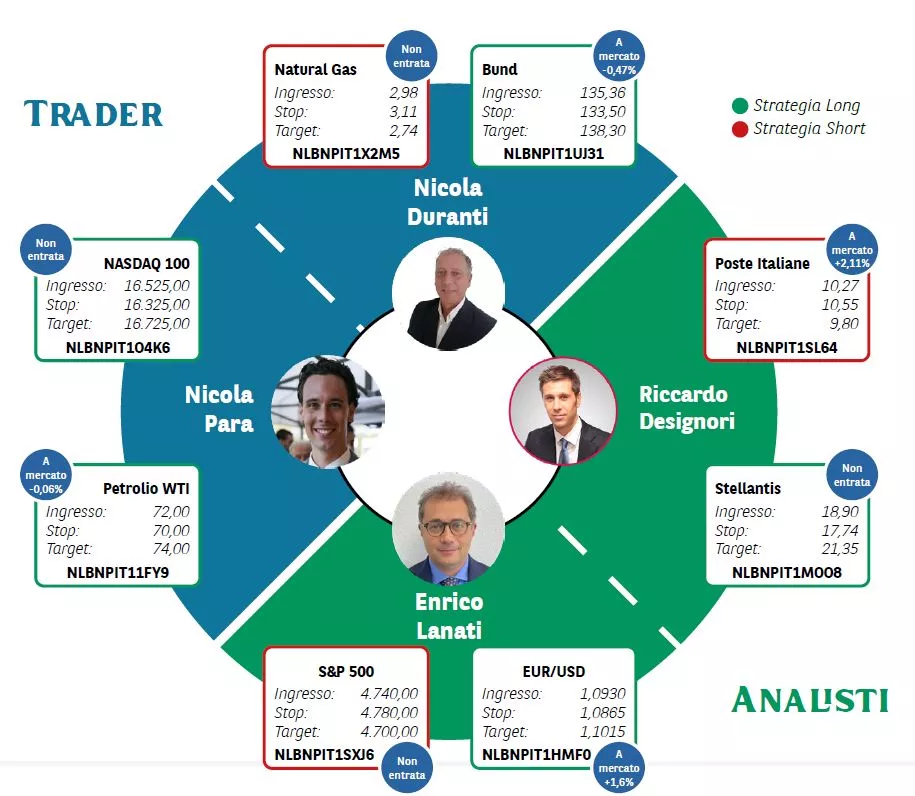 Borsa in Diretta è la newsletter giornaliera di BNP Paribas. Ogni lunedì non perderti l'appuntamento di Weekly FTSE MIB, pillola video in cui si analizza il principale indice di Borsa Italiana e si forniscono strategie operative per la settimana entrante. Inoltre, quotidianamente riceverai informazioni riguardanti notizie finanziarie e appuntamenti macroeconomici della giornata, analisi tecnica dei principali indici azionari FTSE MIB, DAX e S&P500 e aggiornamenti delle Trade Idea fatte dai migliori trader italiani durante House of Trading.