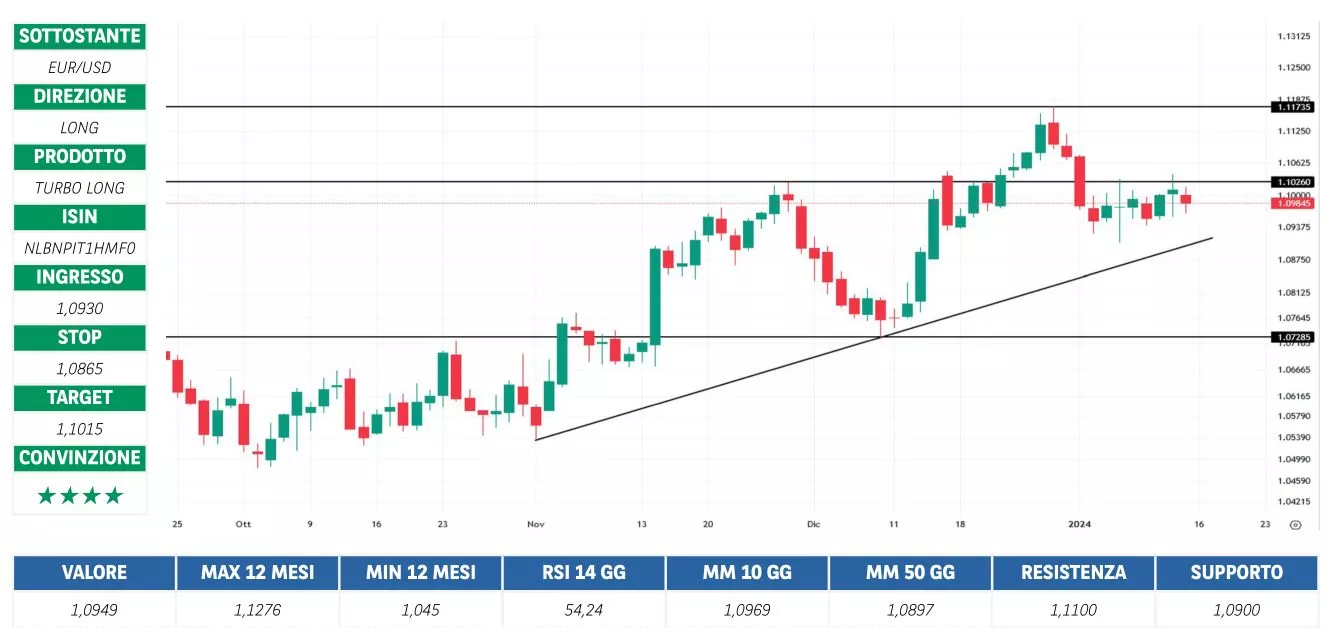 Prima di adottare una decisione di investimento al fine di comprendere appieno i potenziali rischi e benefici connessi alla decisione di investire negli strumenti finanziari quivi menzionati, si invita a leggere attentamente la relativa documentazione di offerta e/o quotazione e, in particolare, le sezioni dedicate ai fattori di rischio connessi all’investimento, ai relativi costi e al trattamento fiscale, e il relativo documento contenente le informazioni chiave (KID), ove disponibile. Tale documentazione è disponibile sul sito web investimenti.bnpparibas.it. L’investimento negli strumenti finanziari quivi menzionati può comportare il rischio di perdita totale o parziale del capitale inizialmente investito. Ove tali strumenti finanziari siano venduti prima della scadenza, l’investitore potrà incorrere anche in perdite in conto capitale. Nel caso in cui tali strumenti finanziari siano acquistati o venduti nel corso della loro durata, il rendimento potrà variare. La presente pubblicazione costituisce materiale pubblicitario e le informazioni in essa contenute hanno scopo meramente informativo e promozionale e non sono da intendersi in alcun modo come ricerca, sollecitazione o raccomandazione all’investimento, offerta al pubblico o consulenza in materia di investimenti. Le informazioni e i grafici a contenuto finanziario quivi riportati sono meramente indicativi e hanno scopo esclusivamente esemplificativo e non esaustivo. I rendimenti passati non sono indicativi, né sono garanzia, dei rendimenti futuri. È responsabilità dell’investitore effettuare un’accurata analisi di tutti i profili fiscali, legali e regolamentari (inclusi i fattori di rischio, tra i quali, i fattori di rischio legati ai tassi di interesse, i fattori di rischio di default e i fattori di rischio legati all’assenza di liquidità) connessi all’investimento negli strumenti finanziari quivi menzionati. BNP Paribas e/o altra società del gruppo BNP Paribas non potranno essere considerate responsabili delle conseguenze finanziarie o di altra natura derivanti dall’investimento in tali strumenti finanziari. Informazioni aggiornate sulla quotazione di questi ultimi sono disponibili sul sito web investimenti.bnpparibas.it. Le raccomandazioni di investimento quivi contenute non soddisfano i requisiti di legge relativi all’indipendenza della ricerca in materia di investimenti e non sono soggette ad alcun divieto di esecuzione di operazioni su strumenti finanziari prima della loro divulgazione.