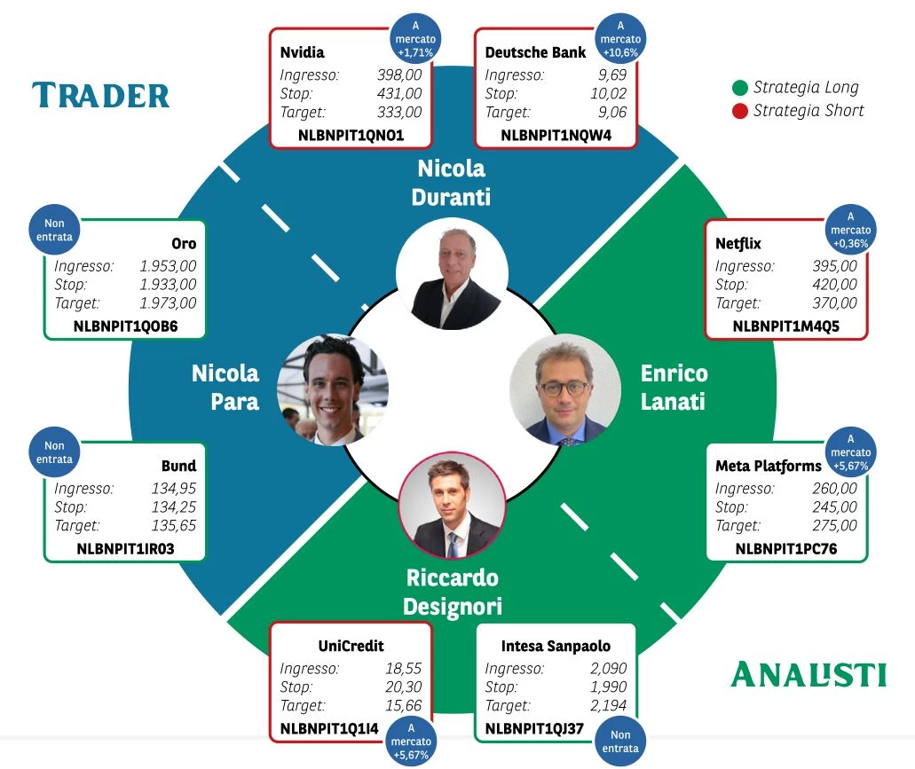 Borsa in Diretta è la newsletter giornaliera di BNP Paribas. Ogni lunedì non perderti l'appuntamento di Weekly FTSE MIB, pillola video in cui si analizza il principale indice di Borsa Italiana e si forniscono strategie operative per la settimana entrante. Inoltre, quotidianamente riceverai informazioni riguardanti notizie finanziarie e appuntamenti macroeconomici della giornata, analisi tecnica dei principali indici azionari FTSE MIB, DAX e S&P500 e aggiornamenti delle Trade Idea fatte dai migliori trader italiani durante House of Trading.