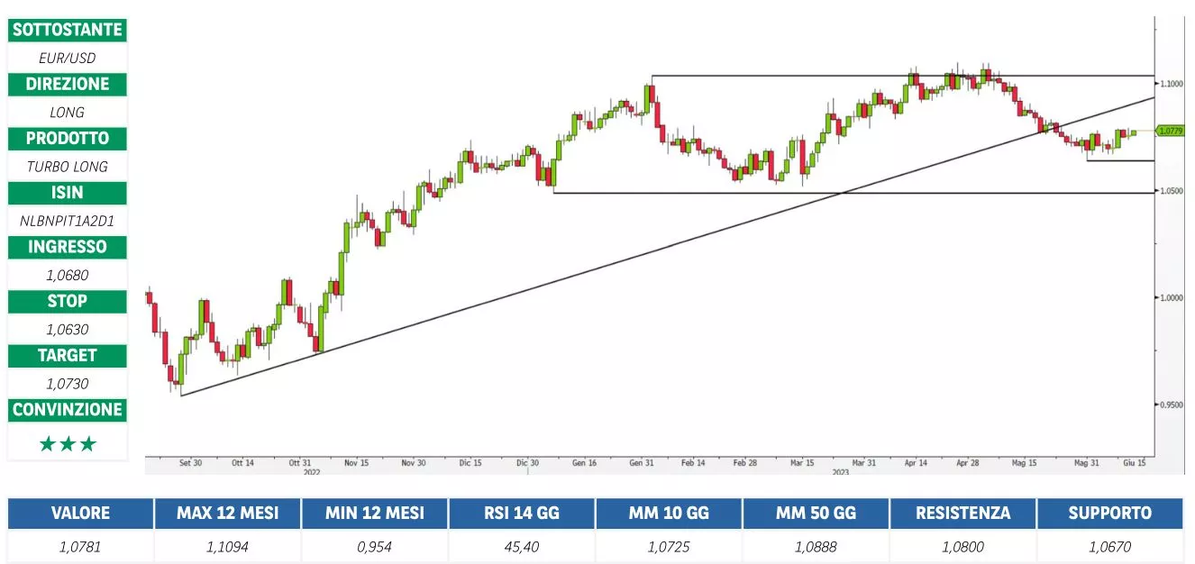 Prima di adottare una decisione di investimento al fine di comprendere appieno i potenziali rischi e benefici connessi alla decisione di investire negli strumenti finanziari quivi menzionati, si invita a leggere attentamente la relativa documentazione di offerta e/o quotazione e, in particolare, le sezioni dedicate ai fattori di rischio connessi all’investimento, ai relativi costi e al trattamento fiscale, e il relativo documento contenente le informazioni chiave (KID), ove disponibile. Tale documentazione è disponibile sul sito web investimenti.bnpparibas.it. L’investimento negli strumenti finanziari quivi menzionati può comportare il rischio di perdita totale o parziale del capitale inizialmente investito. Ove tali strumenti finanziari siano venduti prima della scadenza, l’investitore potrà incorrere anche in perdite in conto capitale. Nel caso in cui tali strumenti finanziari siano acquistati o venduti nel corso della loro durata, il rendimento potrà variare. La presente pubblicazione costituisce materiale pubblicitario e le informazioni in essa contenute hanno scopo meramente informativo e promozionale e non sono da intendersi in alcun modo come ricerca, sollecitazione o raccomandazione all’investimento, offerta al pubblico o consulenza in materia di investimenti. Le informazioni e i grafici a contenuto finanziario quivi riportati sono meramente indicativi e hanno scopo esclusivamente esemplificativo e non esaustivo. I rendimenti passati non sono indicativi, né sono garanzia, dei rendimenti futuri. È responsabilità dell’investitore effettuare un’accurata analisi di tutti i profili fiscali, legali e regolamentari (inclusi i fattori di rischio, tra i quali, i fattori di rischio legati ai tassi di interesse, i fattori di rischio di default e i fattori di rischio legati all’assenza di liquidità) connessi all’investimento negli strumenti finanziari quivi menzionati. BNP Paribas e/o altra società del gruppo BNP Paribas non potranno essere considerate responsabili delle conseguenze finanziarie o di altra natura derivanti dall’investimento in tali strumenti finanziari. Informazioni aggiornate sulla quotazione di questi ultimi sono disponibili sul sito web investimenti.bnpparibas.it. Le raccomandazioni di investimento quivi contenute non soddisfano i requisiti di legge relativi all’indipendenza della ricerca in materia di investimenti e non sono soggette ad alcun divieto di esecuzione di operazioni su strumenti finanziari prima della loro divulgazione.