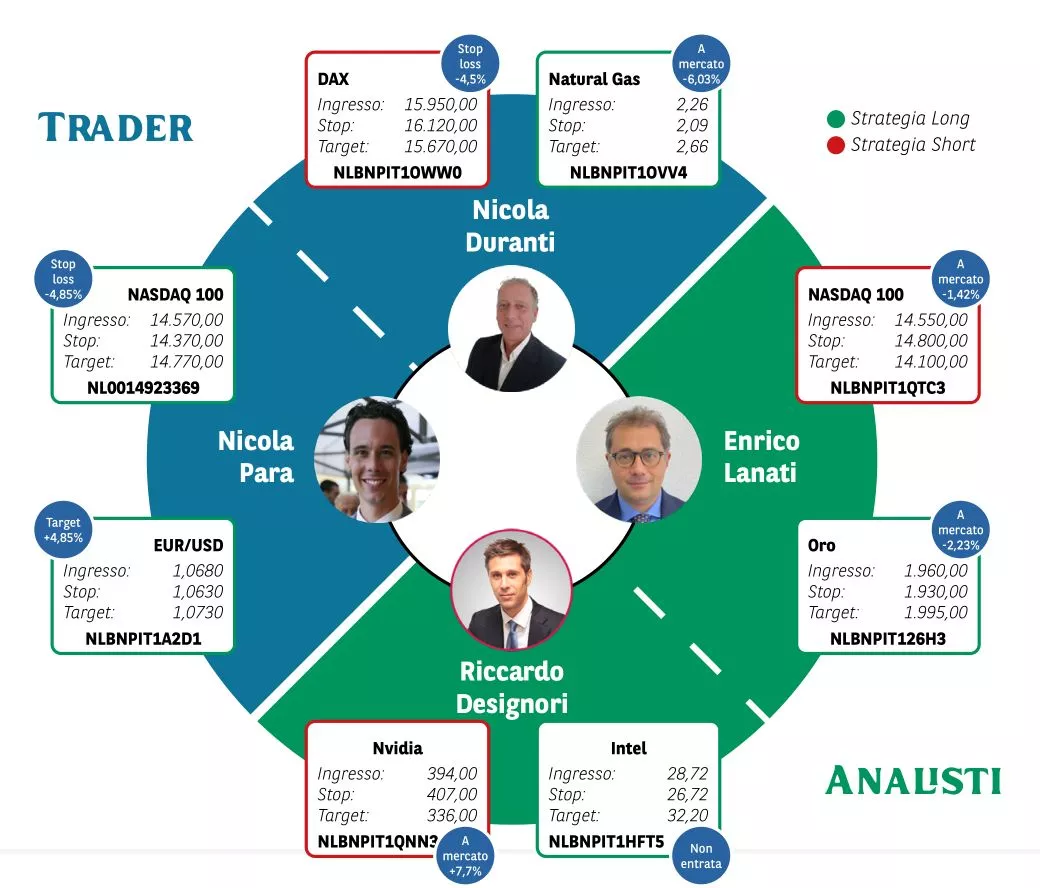 Borsa in Diretta è la newsletter giornaliera di BNP Paribas. Ogni lunedì non perderti l'appuntamento di Weekly FTSE MIB, pillola video in cui si analizza il principale indice di Borsa Italiana e si forniscono strategie operative per la settimana entrante. Inoltre, quotidianamente riceverai informazioni riguardanti notizie finanziarie e appuntamenti macroeconomici della giornata, analisi tecnica dei principali indici azionari FTSE MIB, DAX e S&P500 e aggiornamenti delle Trade Idea fatte dai migliori trader italiani durante House of Trading.