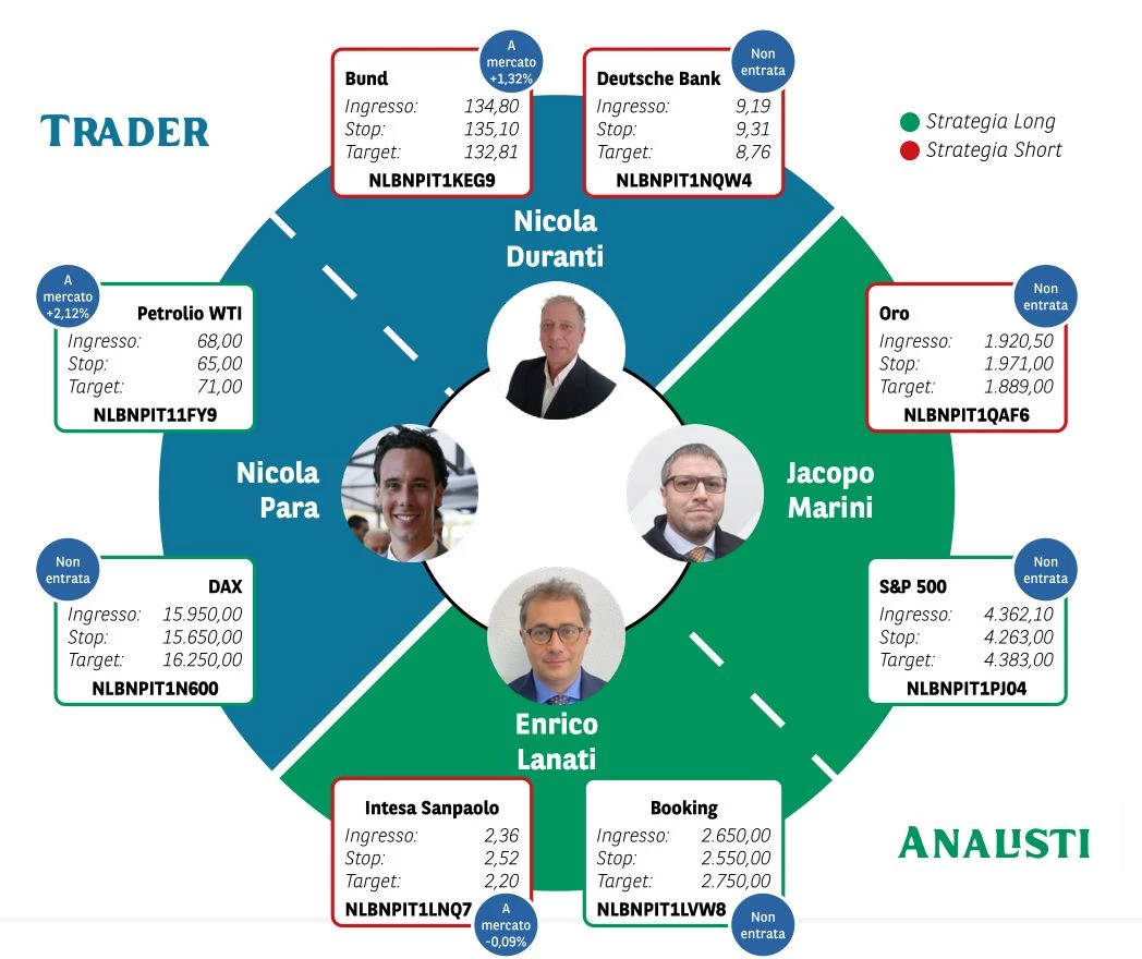 Borsa in Diretta è la newsletter giornaliera di BNP Paribas. Ogni lunedì non perderti l'appuntamento di Weekly FTSE MIB, pillola video in cui si analizza il principale indice di Borsa Italiana e si forniscono strategie operative per la settimana entrante. Inoltre, quotidianamente riceverai informazioni riguardanti notizie finanziarie e appuntamenti macroeconomici della giornata, analisi tecnica dei principali indici azionari FTSE MIB, DAX e S&P500 e aggiornamenti delle Trade Idea fatte dai migliori trader italiani durante House of Trading.