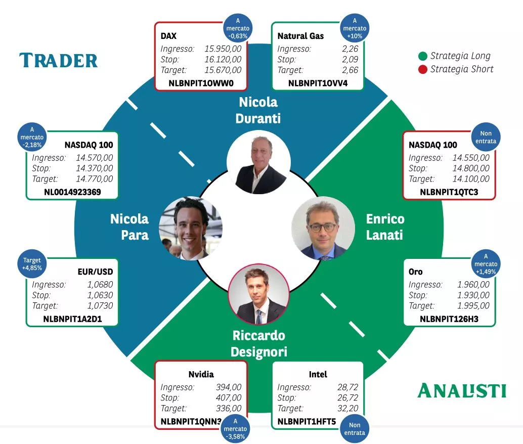 Borsa in Diretta è la newsletter giornaliera di BNP Paribas. Ogni lunedì non perderti l'appuntamento di Weekly FTSE MIB, pillola video in cui si analizza il principale indice di Borsa Italiana e si forniscono strategie operative per la settimana entrante. Inoltre, quotidianamente riceverai informazioni riguardanti notizie finanziarie e appuntamenti macroeconomici della giornata, analisi tecnica dei principali indici azionari FTSE MIB, DAX e S&P500 e aggiornamenti delle Trade Idea fatte dai migliori trader italiani durante House of Trading.