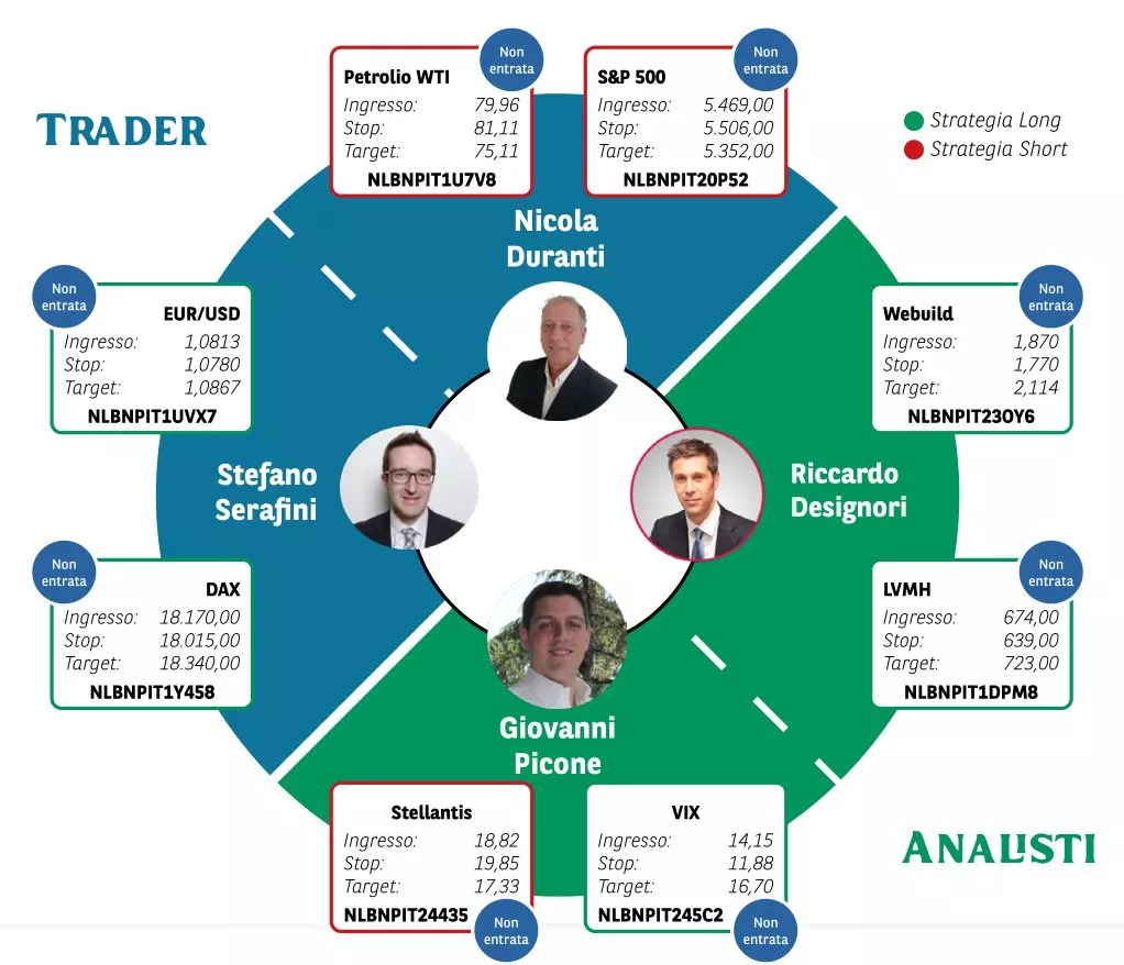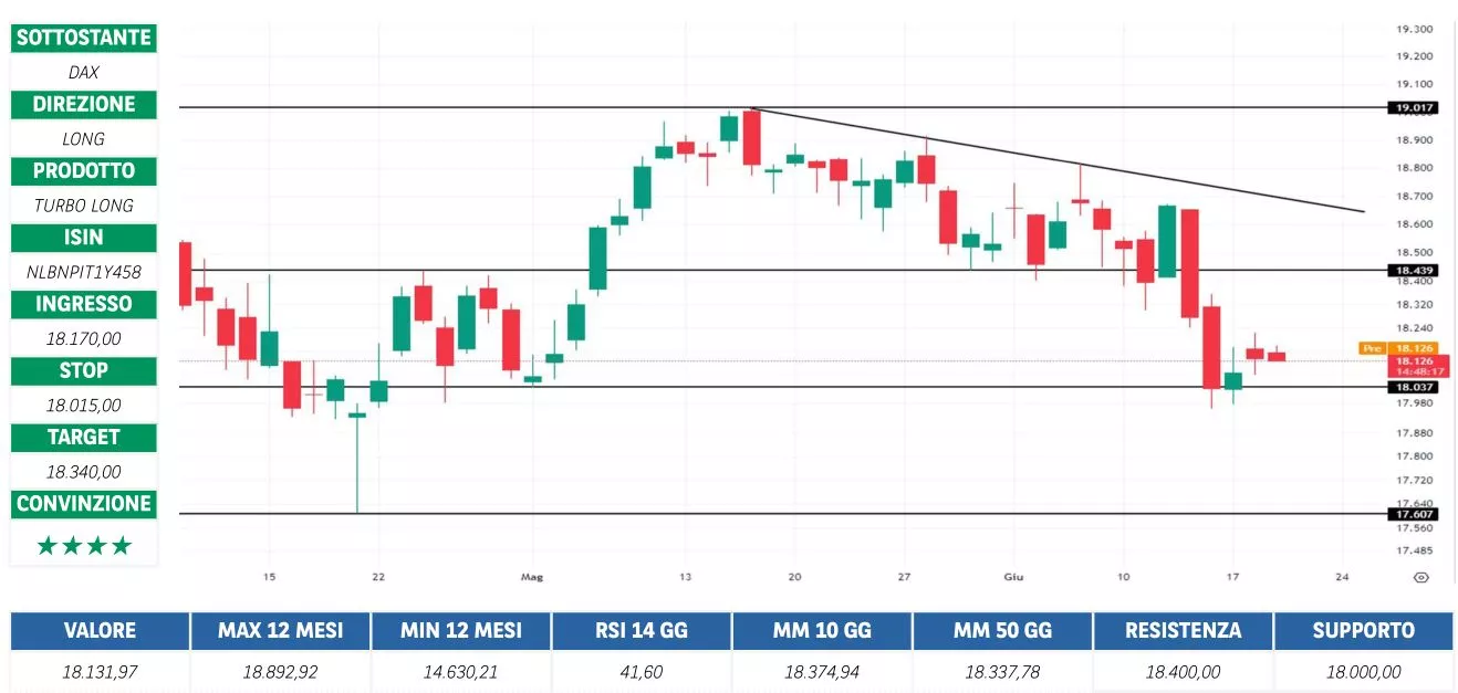 Borsa in Diretta è la newsletter giornaliera di BNP Paribas. Ogni lunedì non perderti l'appuntamento di Weekly FTSE MIB, pillola video in cui si analizza il principale indice di Borsa Italiana e si forniscono strategie operative per la settimana entrante. Inoltre, quotidianamente riceverai informazioni riguardanti notizie finanziarie e appuntamenti macroeconomici della giornata, analisi tecnica dei principali indici azionari FTSE MIB, DAX e S&P500 e aggiornamenti delle Trade Idea fatte dai migliori trader italiani durante House of Trading.