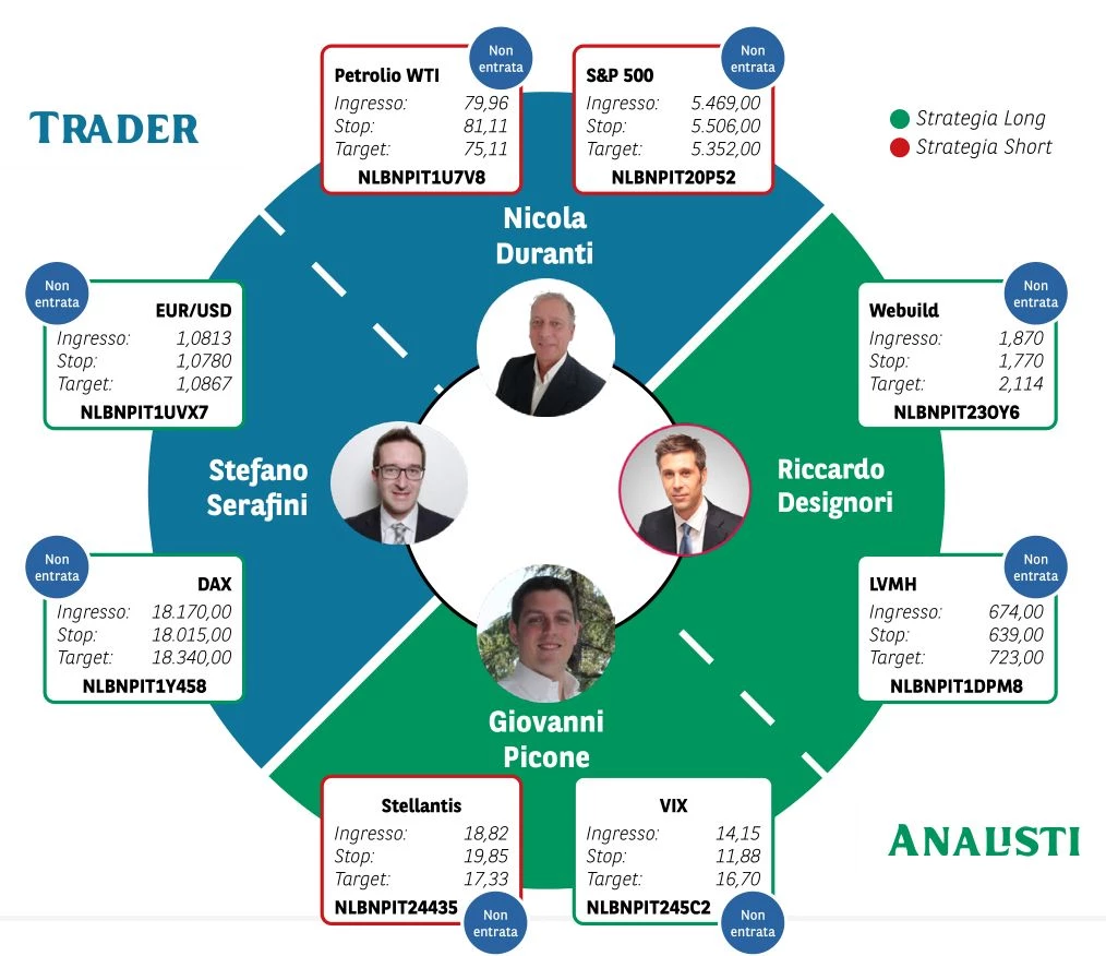 Borsa in Diretta è la newsletter giornaliera di BNP Paribas. Ogni lunedì non perderti l'appuntamento di Weekly FTSE MIB, pillola video in cui si analizza il principale indice di Borsa Italiana e si forniscono strategie operative per la settimana entrante. Inoltre, quotidianamente riceverai informazioni riguardanti notizie finanziarie e appuntamenti macroeconomici della giornata, analisi tecnica dei principali indici azionari FTSE MIB, DAX e S&P500 e aggiornamenti delle Trade Idea fatte dai migliori trader italiani durante House of Trading.