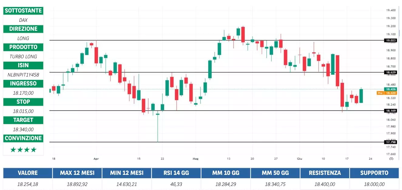 Borsa in Diretta è la newsletter giornaliera di BNP Paribas. Ogni lunedì non perderti l'appuntamento di Weekly FTSE MIB, pillola video in cui si analizza il principale indice di Borsa Italiana e si forniscono strategie operative per la settimana entrante. Inoltre, quotidianamente riceverai informazioni riguardanti notizie finanziarie e appuntamenti macroeconomici della giornata, analisi tecnica dei principali indici azionari FTSE MIB, DAX e S&P500 e aggiornamenti delle Trade Idea fatte dai migliori trader italiani durante House of Trading.