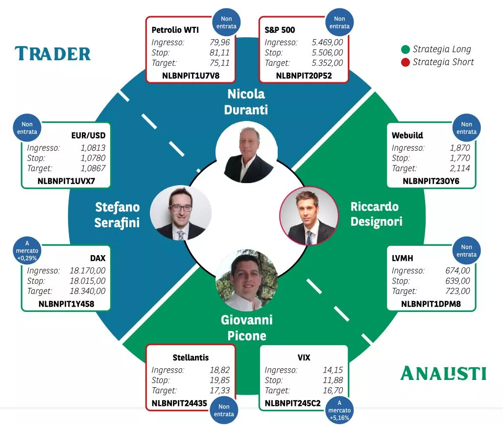 Borsa in Diretta è la newsletter giornaliera di BNP Paribas. Ogni lunedì non perderti l'appuntamento di Weekly FTSE MIB, pillola video in cui si analizza il principale indice di Borsa Italiana e si forniscono strategie operative per la settimana entrante. Inoltre, quotidianamente riceverai informazioni riguardanti notizie finanziarie e appuntamenti macroeconomici della giornata, analisi tecnica dei principali indici azionari FTSE MIB, DAX e S&P500 e aggiornamenti delle Trade Idea fatte dai migliori trader italiani durante House of Trading.