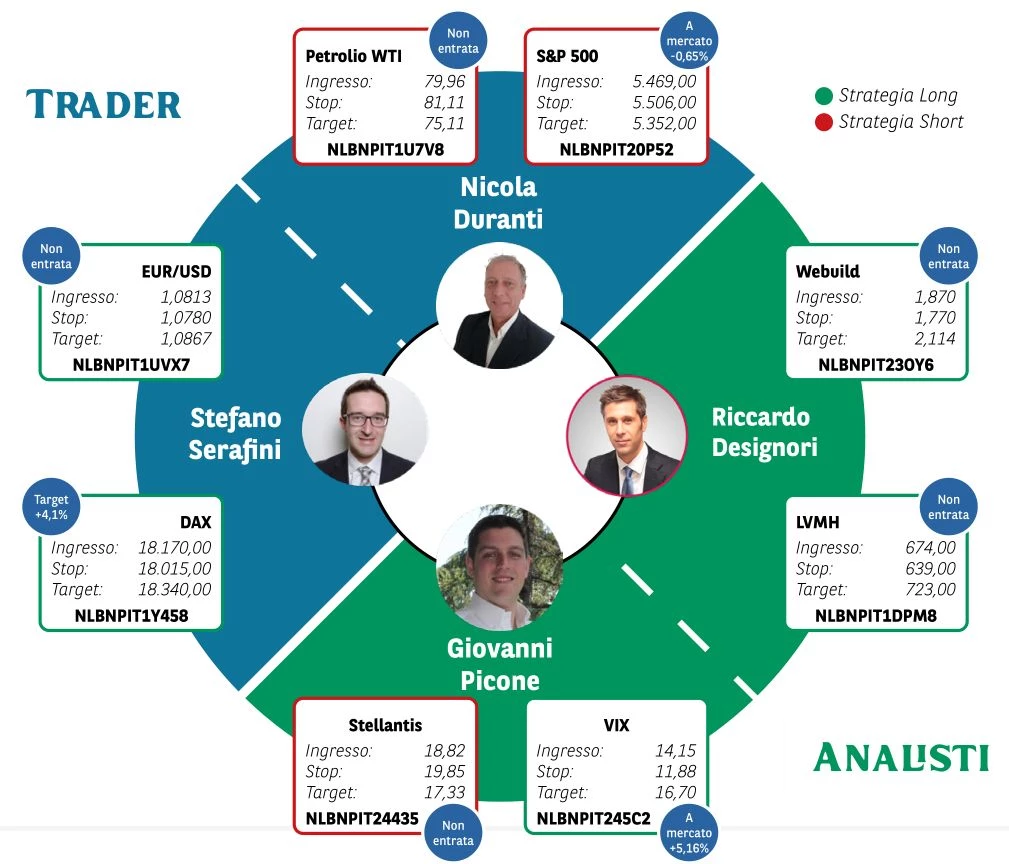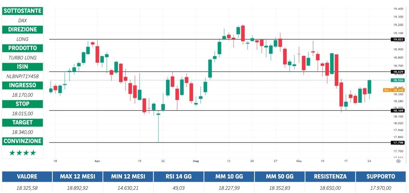 Borsa in Diretta è la newsletter giornaliera di BNP Paribas. Ogni lunedì non perderti l'appuntamento di Weekly FTSE MIB, pillola video in cui si analizza il principale indice di Borsa Italiana e si forniscono strategie operative per la settimana entrante. Inoltre, quotidianamente riceverai informazioni riguardanti notizie finanziarie e appuntamenti macroeconomici della giornata, analisi tecnica dei principali indici azionari FTSE MIB, DAX e S&P500 e aggiornamenti delle Trade Idea fatte dai migliori trader italiani durante House of Trading.