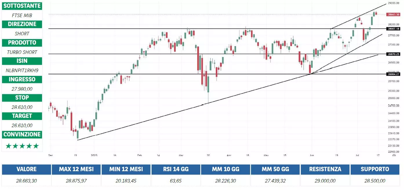 Borsa in Diretta è la newsletter giornaliera di BNP Paribas. Ogni lunedì non perderti l'appuntamento di Weekly FTSE MIB, pillola video in cui si analizza il principale indice di Borsa Italiana e si forniscono strategie operative per la settimana entrante. Inoltre, quotidianamente riceverai informazioni riguardanti notizie finanziarie e appuntamenti macroeconomici della giornata, analisi tecnica dei principali indici azionari FTSE MIB, DAX e S&P500 e aggiornamenti delle Trade Idea fatte dai migliori trader italiani durante House of Trading.