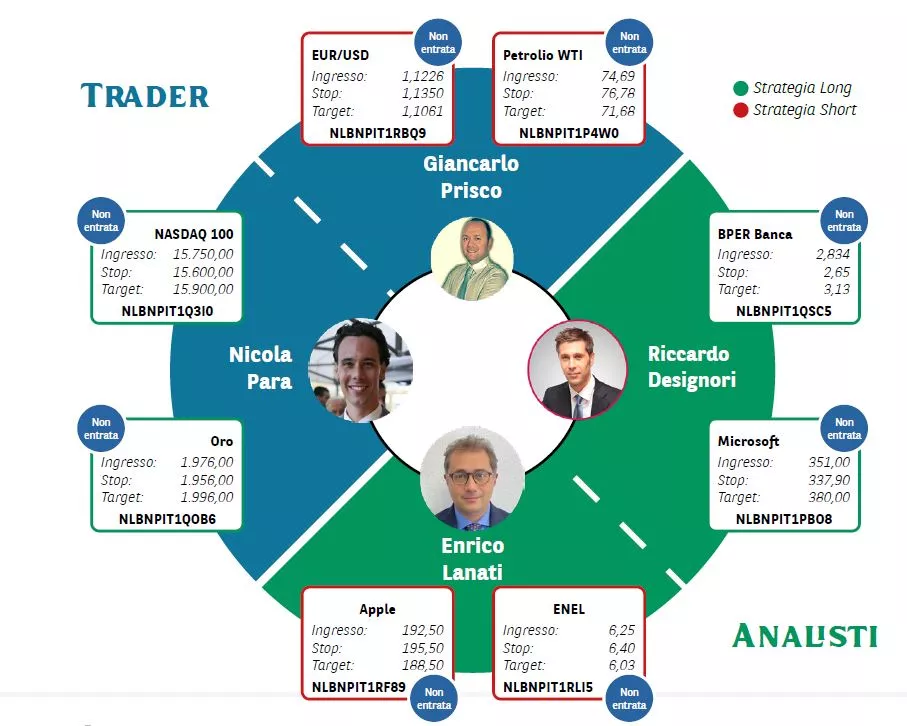 Borsa in Diretta è la newsletter giornaliera di BNP Paribas. Ogni lunedì non perderti l'appuntamento di Weekly FTSE MIB, pillola video in cui si analizza il principale indice di Borsa Italiana e si forniscono strategie operative per la settimana entrante. Inoltre, quotidianamente riceverai informazioni riguardanti notizie finanziarie e appuntamenti macroeconomici della giornata, analisi tecnica dei principali indici azionari FTSE MIB, DAX e S&P500 e aggiornamenti delle Trade Idea fatte dai migliori trader italiani durante House of Trading.