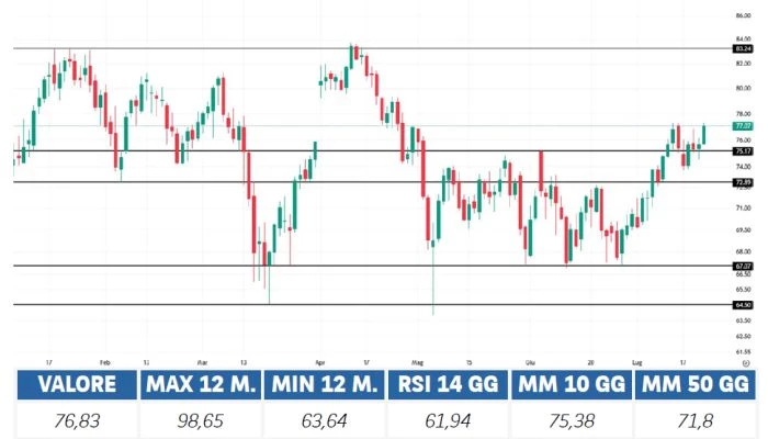 Prima di adottare una decisione di investimento al fine di comprendere appieno i potenziali rischi e benefici connessi alla decisione di investire negli strumenti finanziari quivi menzionati, si invita a leggere attentamente la relativa documentazione di offerta e/o quotazione e, in particolare, le sezioni dedicate ai fattori di rischio connessi all’investimento, ai relativi costi e al trattamento fiscale, e il relativo documento contenente le informazioni chiave (KID), ove disponibile. Tale documentazione è disponibile sul sito web investimenti.bnpparibas.it. L’investimento negli strumenti finanziari quivi menzionati può comportare il rischio di perdita totale o parziale del capitale inizialmente investito. Ove tali strumenti finanziari siano venduti prima della scadenza, l’investitore potrà incorrere anche in perdite in conto capitale. Nel caso in cui tali strumenti finanziari siano acquistati o venduti nel corso della loro durata, il rendimento potrà variare. La presente pubblicazione costituisce materiale pubblicitario e le informazioni in essa contenute hanno scopo meramente informativo e promozionale e non sono da intendersi in alcun modo come ricerca, sollecitazione o raccomandazione all’investimento, offerta al pubblico o consulenza in materia di investimenti. Le informazioni e i grafici a contenuto finanziario quivi riportati sono meramente indicativi e hanno scopo esclusivamente esemplificativo e non esaustivo. I rendimenti passati non sono indicativi, né sono garanzia, dei rendimenti futuri. È responsabilità dell’investitore effettuare un’accurata analisi di tutti i profili fiscali, legali e regolamentari (inclusi i fattori di rischio, tra i quali, i fattori di rischio legati ai tassi di interesse, i fattori di rischio di default e i fattori di rischio legati all’assenza di liquidità) connessi all’investimento negli strumenti finanziari quivi menzionati. BNP Paribas e/o altra società del gruppo BNP Paribas non potranno essere considerate responsabili delle conseguenze finanziarie o di altra natura derivanti dall’investimento in tali strumenti finanziari. Informazioni aggiornate sulla quotazione di questi ultimi sono disponibili sul sito web investimenti.bnpparibas.it. Le raccomandazioni di investimento quivi contenute non soddisfano i requisiti di legge relativi all’indipendenza della ricerca in materia di investimenti e non sono soggette ad alcun divieto di esecuzione di operazioni su strumenti finanziari prima della loro divulgazione.