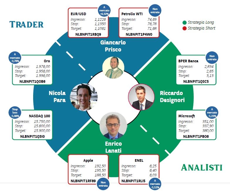 Borsa in Diretta è la newsletter giornaliera di BNP Paribas. Ogni lunedì non perderti l'appuntamento di Weekly FTSE MIB, pillola video in cui si analizza il principale indice di Borsa Italiana e si forniscono strategie operative per la settimana entrante. Inoltre, quotidianamente riceverai informazioni riguardanti notizie finanziarie e appuntamenti macroeconomici della giornata, analisi tecnica dei principali indici azionari FTSE MIB, DAX e S&P500 e aggiornamenti delle Trade Idea fatte dai migliori trader italiani durante House of Trading.