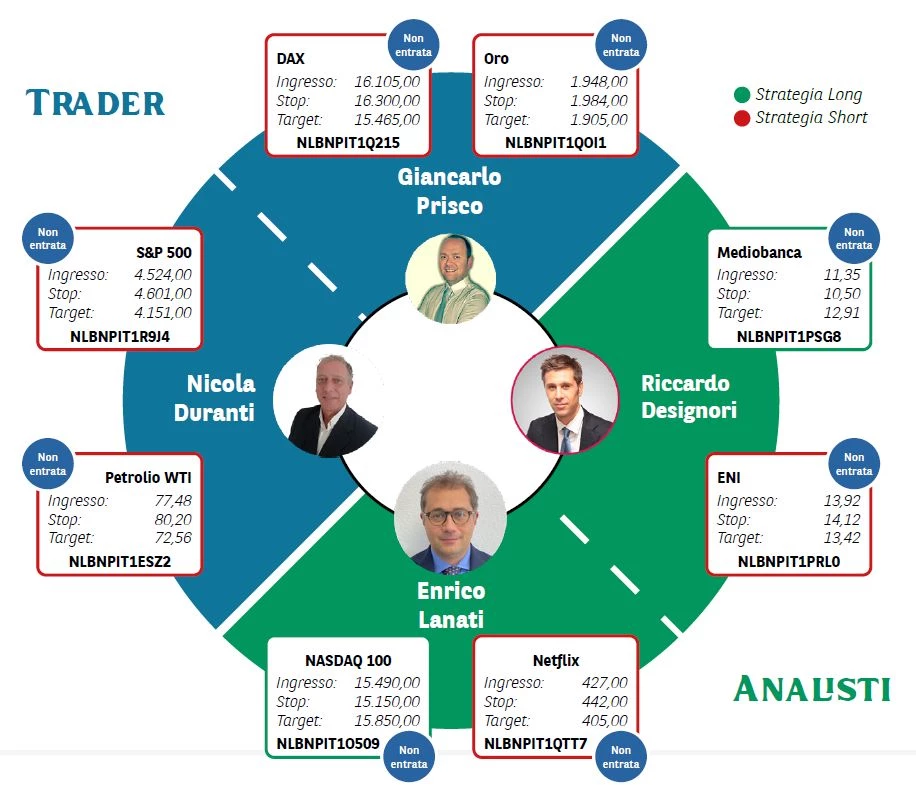 Borsa in Diretta è la newsletter giornaliera di BNP Paribas. Ogni lunedì non perderti l'appuntamento di Weekly FTSE MIB, pillola video in cui si analizza il principale indice di Borsa Italiana e si forniscono strategie operative per la settimana entrante. Inoltre, quotidianamente riceverai informazioni riguardanti notizie finanziarie e appuntamenti macroeconomici della giornata, analisi tecnica dei principali indici azionari FTSE MIB, DAX e S&P500 e aggiornamenti delle Trade Idea fatte dai migliori trader italiani durante House of Trading.