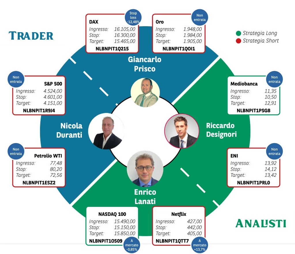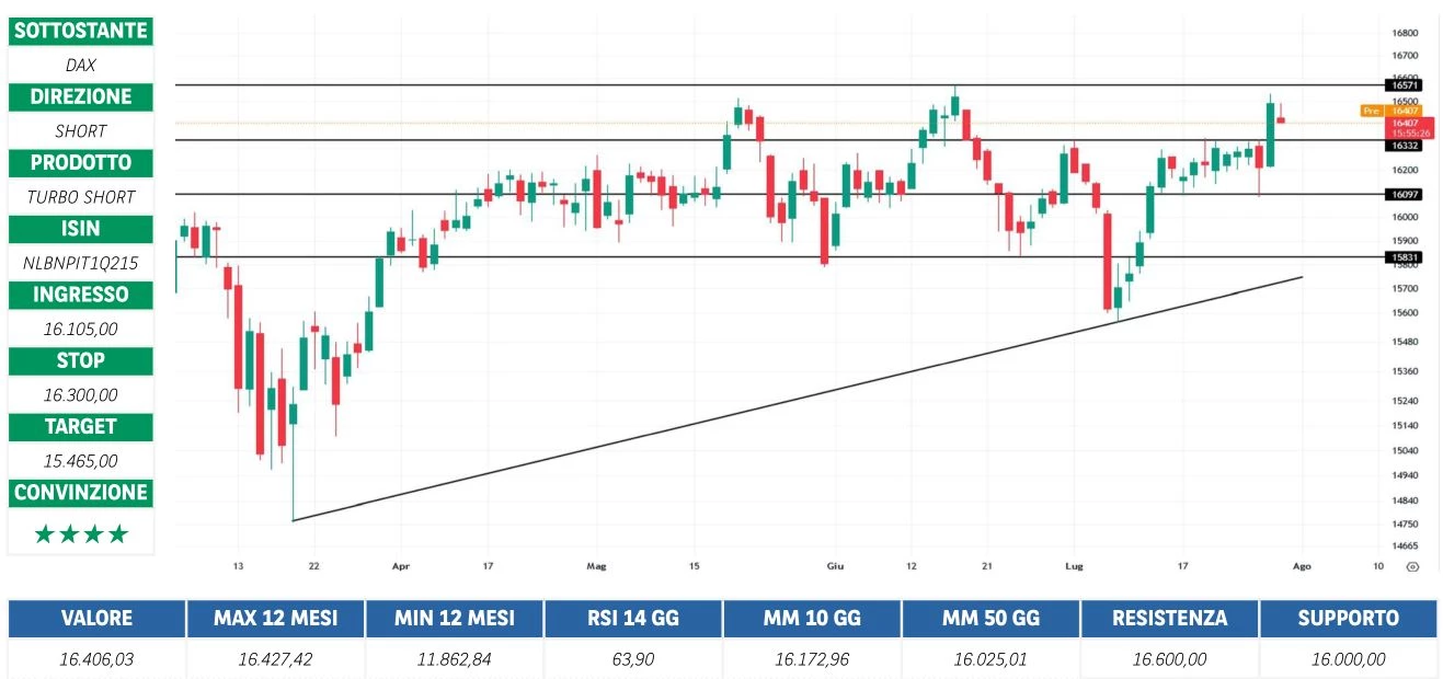 Borsa in Diretta è la newsletter giornaliera di BNP Paribas. Ogni lunedì non perderti l'appuntamento di Weekly FTSE MIB, pillola video in cui si analizza il principale indice di Borsa Italiana e si forniscono strategie operative per la settimana entrante. Inoltre, quotidianamente riceverai informazioni riguardanti notizie finanziarie e appuntamenti macroeconomici della giornata, analisi tecnica dei principali indici azionari FTSE MIB, DAX e S&P500 e aggiornamenti delle Trade Idea fatte dai migliori trader italiani durante House of Trading.
