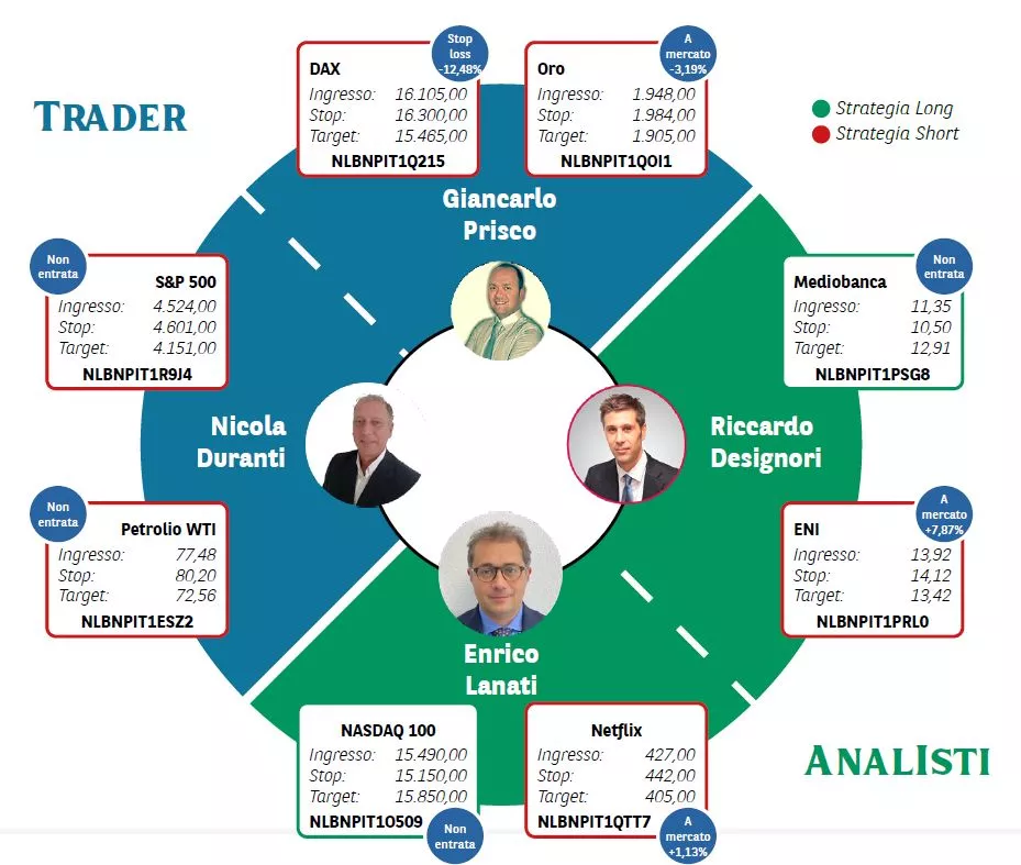 Borsa in Diretta è la newsletter giornaliera di BNP Paribas. Ogni lunedì non perderti l'appuntamento di Weekly FTSE MIB, pillola video in cui si analizza il principale indice di Borsa Italiana e si forniscono strategie operative per la settimana entrante. Inoltre, quotidianamente riceverai informazioni riguardanti notizie finanziarie e appuntamenti macroeconomici della giornata, analisi tecnica dei principali indici azionari FTSE MIB, DAX e S&P500 e aggiornamenti delle Trade Idea fatte dai migliori trader italiani durante House of Trading.