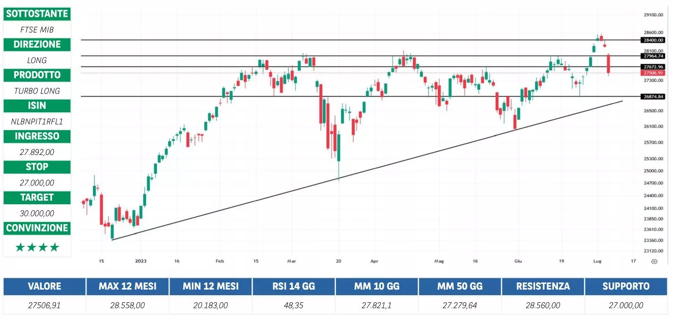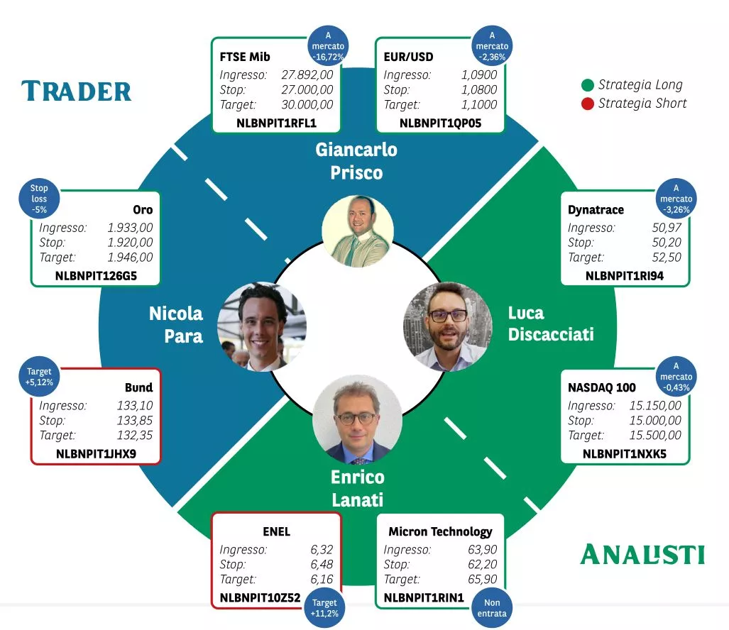 Borsa in Diretta è la newsletter giornaliera di BNP Paribas. Ogni lunedì non perderti l'appuntamento di Weekly FTSE MIB, pillola video in cui si analizza il principale indice di Borsa Italiana e si forniscono strategie operative per la settimana entrante. Inoltre, quotidianamente riceverai informazioni riguardanti notizie finanziarie e appuntamenti macroeconomici della giornata, analisi tecnica dei principali indici azionari FTSE MIB, DAX e S&P500 e aggiornamenti delle Trade Idea fatte dai migliori trader italiani durante House of Trading.