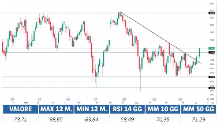 Prima di adottare una decisione di investimento al fine di comprendere appieno i potenziali rischi e benefici connessi alla decisione di investire negli strumenti finanziari quivi menzionati, si invita a leggere attentamente la relativa documentazione di offerta e/o quotazione e, in particolare, le sezioni dedicate ai fattori di rischio connessi all’investimento, ai relativi costi e al trattamento fiscale, e il relativo documento contenente le informazioni chiave (KID), ove disponibile. Tale documentazione è disponibile sul sito web investimenti.bnpparibas.it. L’investimento negli strumenti finanziari quivi menzionati può comportare il rischio di perdita totale o parziale del capitale inizialmente investito. Ove tali strumenti finanziari siano venduti prima della scadenza, l’investitore potrà incorrere anche in perdite in conto capitale. Nel caso in cui tali strumenti finanziari siano acquistati o venduti nel corso della loro durata, il rendimento potrà variare. La presente pubblicazione costituisce materiale pubblicitario e le informazioni in essa contenute hanno scopo meramente informativo e promozionale e non sono da intendersi in alcun modo come ricerca, sollecitazione o raccomandazione all’investimento, offerta al pubblico o consulenza in materia di investimenti. Le informazioni e i grafici a contenuto finanziario quivi riportati sono meramente indicativi e hanno scopo esclusivamente esemplificativo e non esaustivo. I rendimenti passati non sono indicativi, né sono garanzia, dei rendimenti futuri. È responsabilità dell’investitore effettuare un’accurata analisi di tutti i profili fiscali, legali e regolamentari (inclusi i fattori di rischio, tra i quali, i fattori di rischio legati ai tassi di interesse, i fattori di rischio di default e i fattori di rischio legati all’assenza di liquidità) connessi all’investimento negli strumenti finanziari quivi menzionati. BNP Paribas e/o altra società del gruppo BNP Paribas non potranno essere considerate responsabili delle conseguenze finanziarie o di altra natura derivanti dall’investimento in tali strumenti finanziari. Informazioni aggiornate sulla quotazione di questi ultimi sono disponibili sul sito web investimenti.bnpparibas.it. Le raccomandazioni di investimento quivi contenute non soddisfano i requisiti di legge relativi all’indipendenza della ricerca in materia di investimenti e non sono soggette ad alcun divieto di esecuzione di operazioni su strumenti finanziari prima della loro divulgazione.