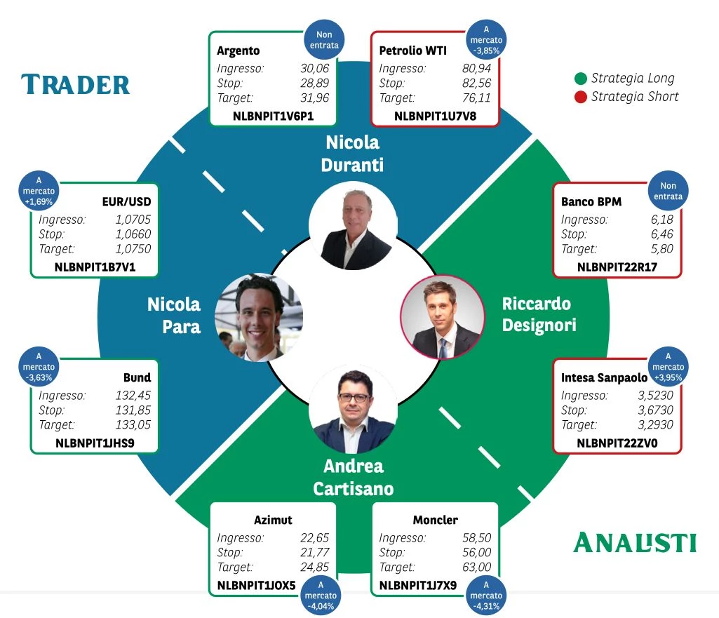 Borsa in Diretta è la newsletter giornaliera di BNP Paribas. Ogni lunedì non perderti l'appuntamento di Weekly FTSE MIB, pillola video in cui si analizza il principale indice di Borsa Italiana e si forniscono strategie operative per la settimana entrante. Inoltre, quotidianamente riceverai informazioni riguardanti notizie finanziarie e appuntamenti macroeconomici della giornata, analisi tecnica dei principali indici azionari FTSE MIB, DAX e S&P500 e aggiornamenti delle Trade Idea fatte dai migliori trader italiani durante House of Trading.
