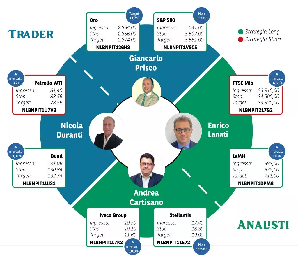 Borsa in Diretta è la newsletter giornaliera di BNP Paribas. Ogni lunedì non perderti l'appuntamento di Weekly FTSE MIB, pillola video in cui si analizza il principale indice di Borsa Italiana e si forniscono strategie operative per la settimana entrante. Inoltre, quotidianamente riceverai informazioni riguardanti notizie finanziarie e appuntamenti macroeconomici della giornata, analisi tecnica dei principali indici azionari FTSE MIB, DAX e S&P500 e aggiornamenti delle Trade Idea fatte dai migliori trader italiani durante House of Trading.